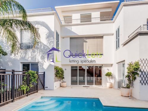 SAN PAWL TAT-TARGA - Here we have a wonderful DETACHED VILLA in the private gated development of nine modern homes, each with its own pool, popular with young families. The property consists of an open plan living/dining room, a modern kitchen fitted with all commodities three bedrooms (possibility of a fourth) three bathrooms, a roof studio as well as a laundry area, playroom, large outside space with swimming pool, garden, and a two-car garage. Property being offered unfurnished