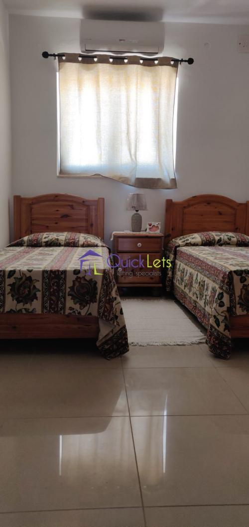 NAXXAR. A spacious two bedroom two bathroom apartment located in the very nice part of Naxxar(Near Maypole), situated close to all amenities. The apartment is fully finished and furnished. It comprises a large spacious open plan, fully equipped kitchen, and living area, and large size front terrace with a beautiful view. Through the corridor, one can find the two double bedrooms(main with en-suite), both with air-conditioning, back terrace and the main bathroom