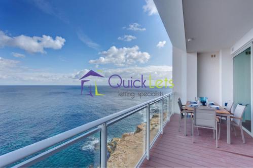 SLIEMA - TIGNE POINT| Located within one of Malta's most sought out luxury developments, Tigne Point. This apartment boasts spectacular open sea views. Finished to a very high standard. It has an open plan kitchen with separate pantry room, dining - living area with access to a spacious terrace, two bedrooms, guest toilet and main bathroom in hallway, utility room with washer/dryer, en-suite and walk-in wardrobe in the main bedroom. Fully air-conditioned and equipped with all appliances. One can also make use of Tigne Point communal pool. Parking space included.