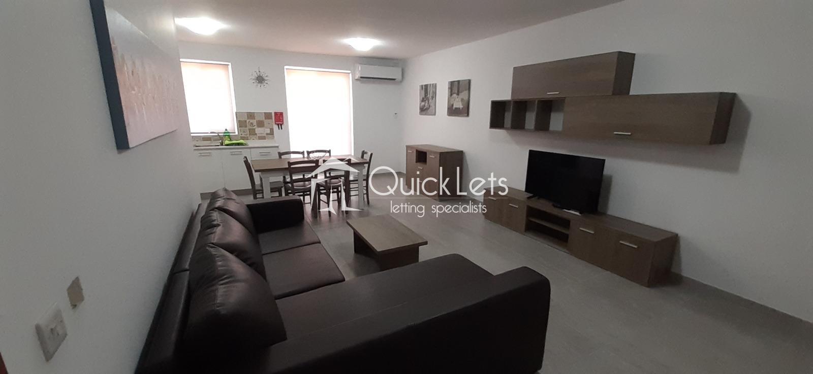 BIRZEBBUGIA - New (2021) two-bedroom apartment, located on the second floor, the block is served with the lift. The layout of the apartment comprises of the open plan living/kitchen/dining area, the main bathroom with the shower, the main bedroom with a double bed and with a shower en-suite, a spare bedroom with two single beds apartment, front and back balconies, utility room. This apartment is equipped with the TV and a sofa, fridge/freezer, oven, hob, hood, microwave, washing machine, and blinds/curtains in all windows.