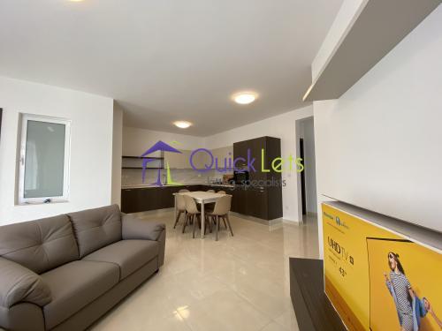 MARSASKALA - A modern and new three-bedroom apartment, the block is served with a lift. One can find a bright, fully equipped kitchen/dining/sitting area with a sofa. Main double bedroom with en-suite, both spare bedrooms are with two single beds, front and back balconies, the main bathroom with a bathtub, a washing machine.