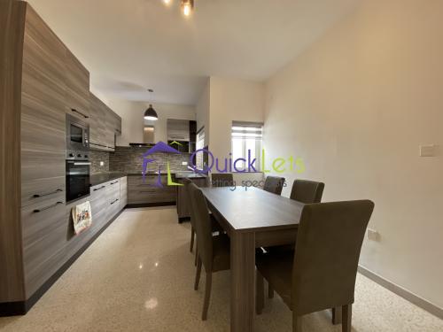 BIRKIRKARA - Ta' Paris area - A three-bedroom elevated maisonette with all brand new furniture and appliances. The layout of the property consists of an open plan kitchen/dining/and living area, the bathroom with a walk/in the shower, two double bedrooms, one single bedroom, the use of the roof with BBQ area and outdoor furniture, washroom.