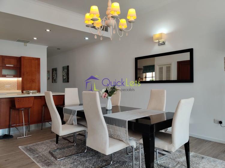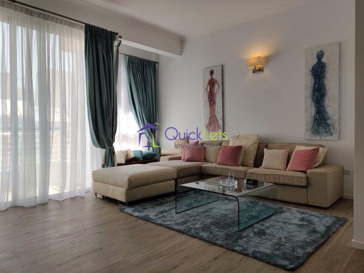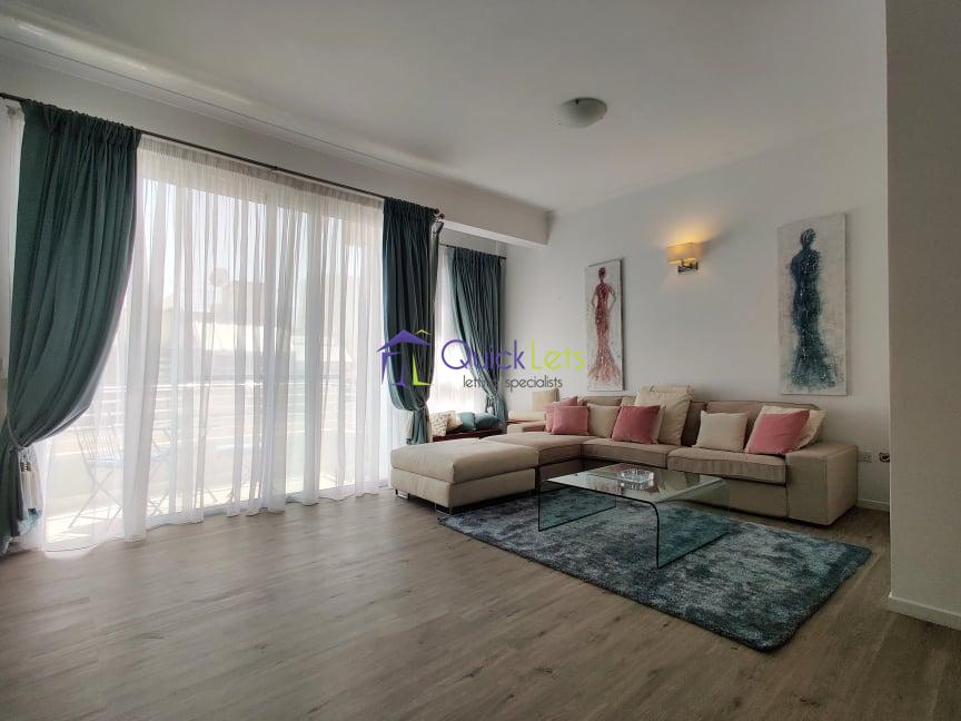 ST. JULIANS | Fully furnished and spacious apartment in a prime location just off Spinola Bay and close to Portomaso Marina. The apartment enjoys a well finished, comfortable open plan living-kitten-dining area, front balcony to sit out on, two sizeable double bedrooms, utility room, main bathroom with bath-tub, an en-suite shower and back balcony in the main bedroom. Full air-conditioned.