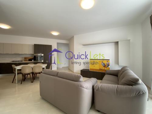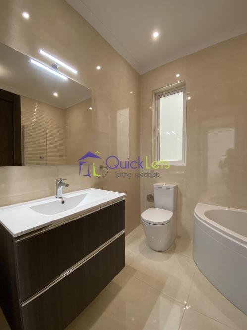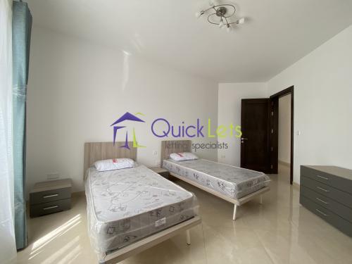 MARSASKALA - A modern and new three-bedroom apartment, the block is served with a lift. One can find a bright, fully equipped kitchen/dining/sitting area with a sofa. Main double bedroom with en-suite, both spare bedrooms are with two single beds, front and back balconies, the main bathroom with a bathtub, a washing machine.