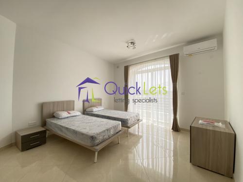 MARSASKALA - A modern and new three-bedroom apartment, the block is served with a lift. One can find a bright, fully equipped kitchen/dining/sitting area with a sofa. Main double bedroom with en-suite, both spare bedrooms are with two single beds, front and back balconies, the main bathroom with a bathtub, a washing machine.