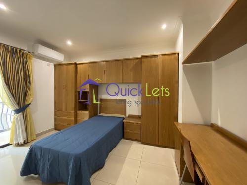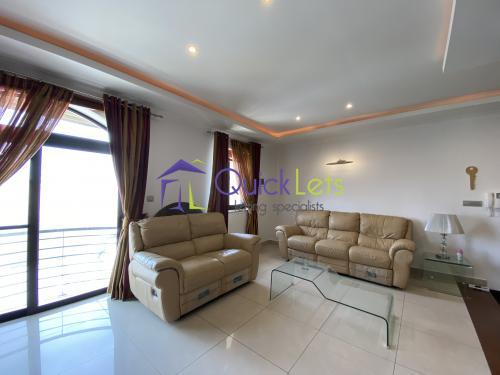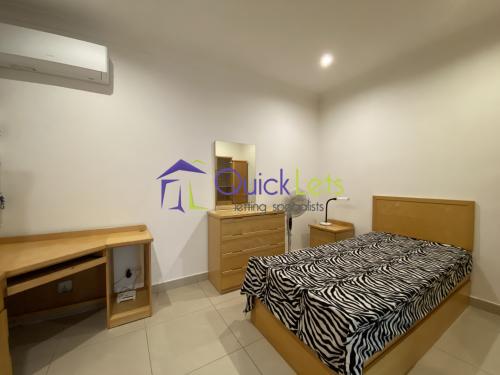 MARSASKALA - An elevated ground-floor three-bedroom maisonette. The layout consists of an open plan sitting/dining/kitchen area, a small front balcony, two spare bedrooms with a single bed and study area, the main bathroom with a shower, the main bedroom with a double bed and shower en-suite, the back balcony, a washroom. The maisonette is fully air-conditioned.