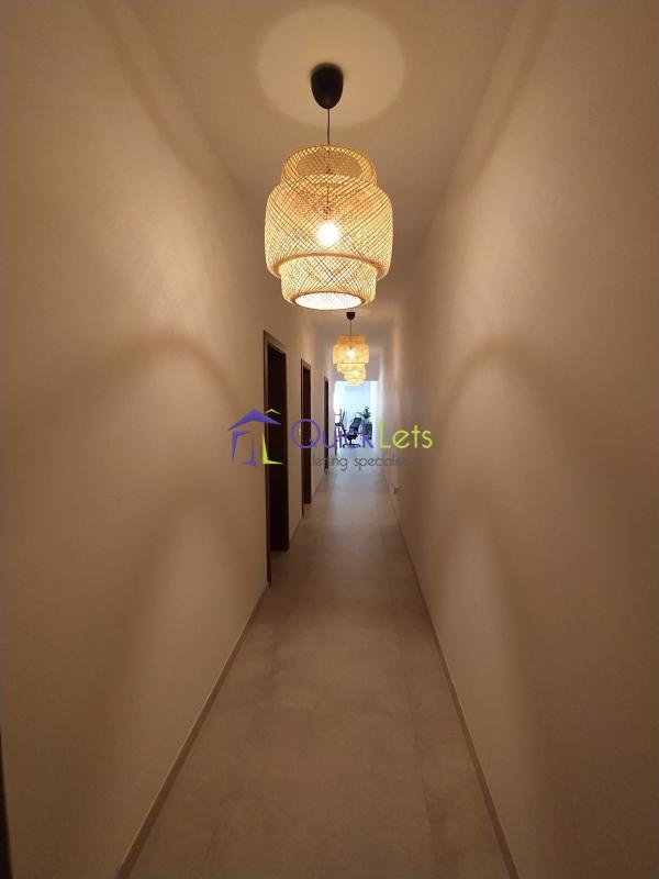 GHAXAQ. New on the market. A Three-bedroom apartment available for long let. This beautiful property very well designed, consists of three bedrooms, two bathrooms - a main and an en-suite with the main bedroom, a kitchen/dining and living area in a spacious open plan layout and two balconies front and back. Property comes fully equipped, consisting of a dishwasher, oven, microwave, induction hob etc .AC's are available in the open plan and in the main bedroom. Heating AC's are also included in both bathrooms. Property is close to all amenities and daily needs.
