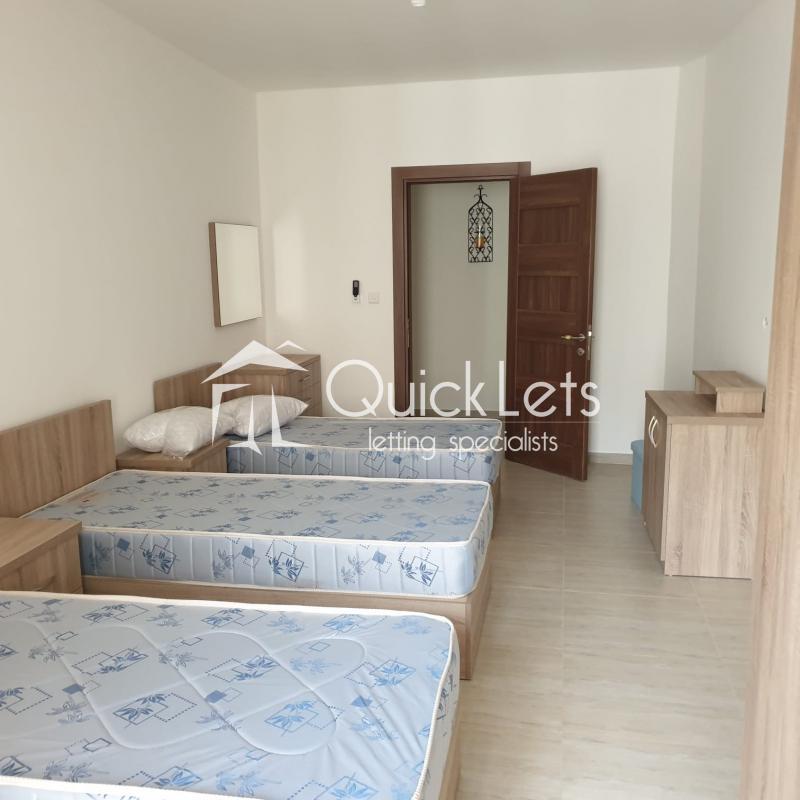 FGURA - Two-bedroom apartment located close to Fgura Center and all amenities. It comprises an open-plan kitchen/living /dining area leading to the back balcony. Two bedrooms main bedroom with an en-suite and the other room with three single beds and a bathroom. This property is fully air-conditioned.