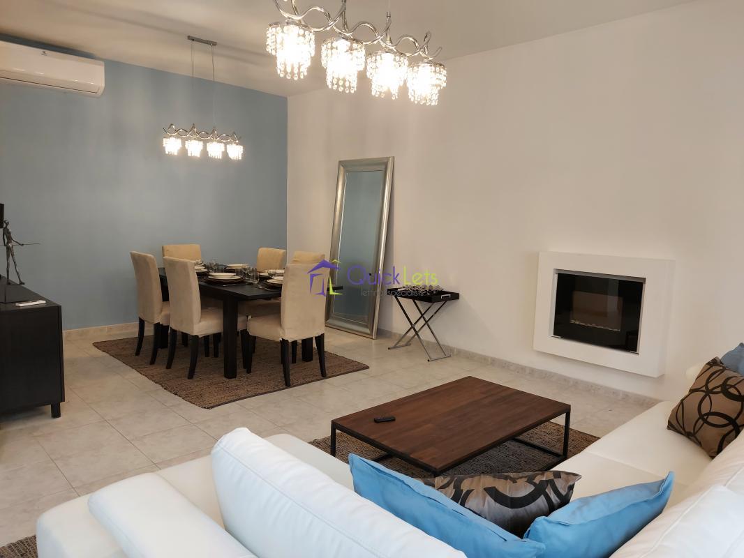 SLIEMA - A beautiful, very large, fully furnished modern apartment, in Sliema, one minute away from the Strand. The property includes a lounge with an electric fireplace and a dining room, a fully equipped kitchen, a master bedroom with an ensuite showeroom, a twin bedroom, a bathroom, a guest bathroom, a TV room overlooking a terrace and a laundry room. Equipped with 4 acs.