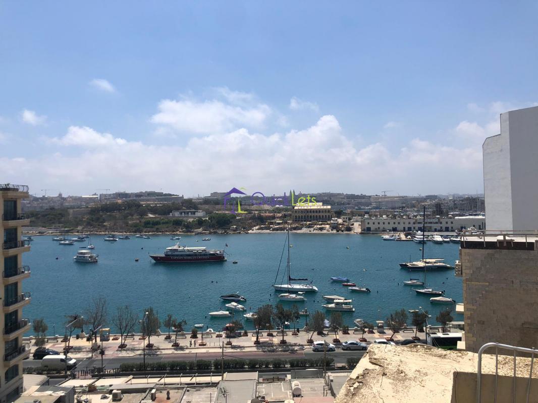 SLIEMA - Here we have spacious one bedroom apartment situated on a perfect location providing the most amazing sea views of the area. The apartment consist of open plan kitchen\living\dining area leading to spacious terrace with outdoor furniture and featuring amazing sea views, also there is one master bedroom with spacious back terrace, one spare room that can be used as an office and a master bathroom.