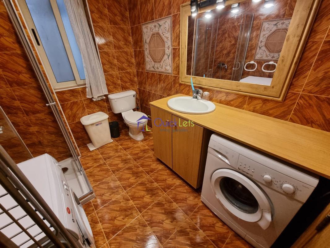 The property consists of an open plan kitchen/dining/living area leading to the front balcony, a three-bedroom (main and second with AC), the main bathroom, and an ensuite with the main bedroom, both have showers. Fully furnished, with two balconies, parking space in the street, and it is served with a lift.