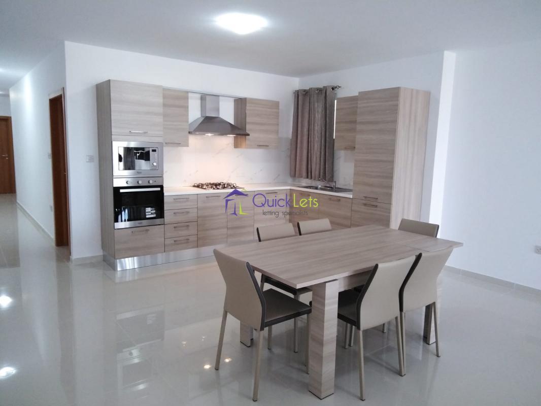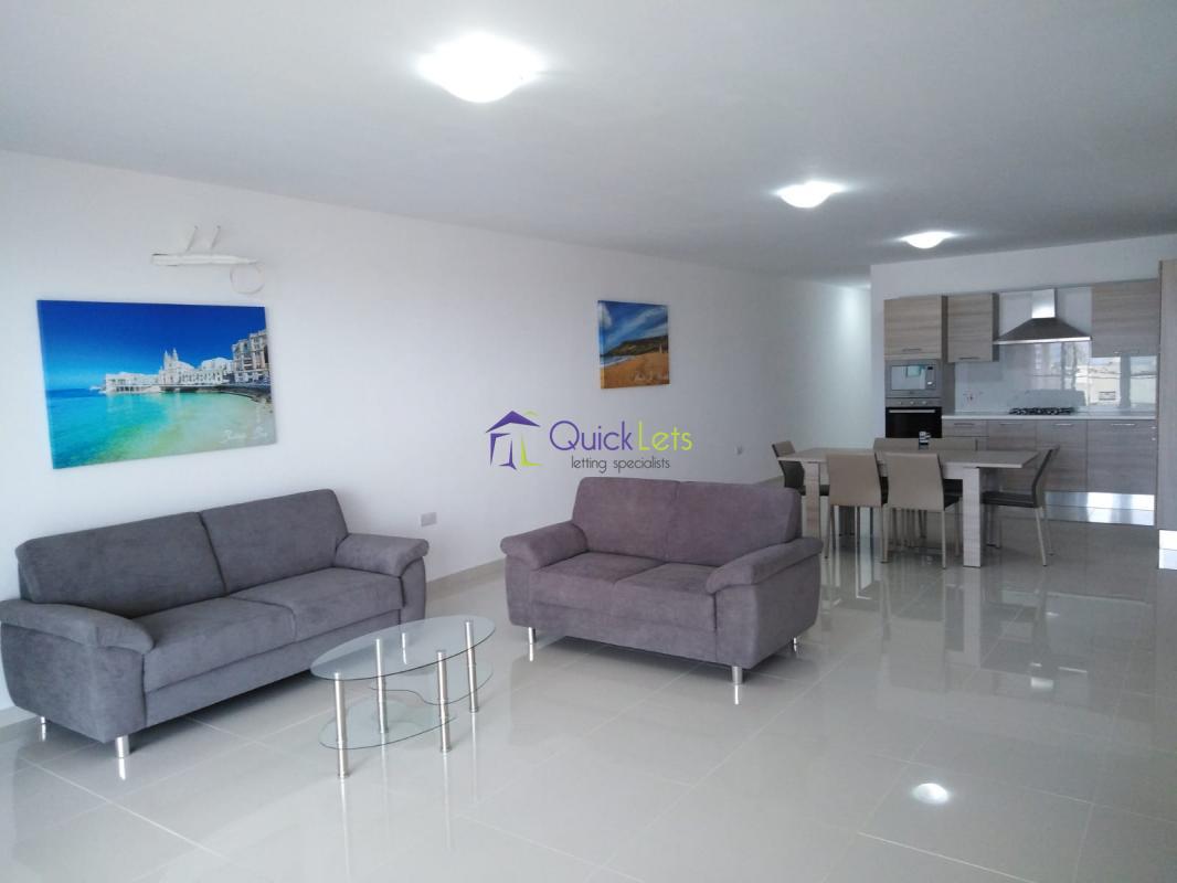 ZURRIEQ - 4th floor three bedroom apartment served with lift. Property comprises of a large open plan kitchen/living/dining leading a a front balcony, three bedrooms (main with ensuite), main bathroom and back terrace.Wifi included