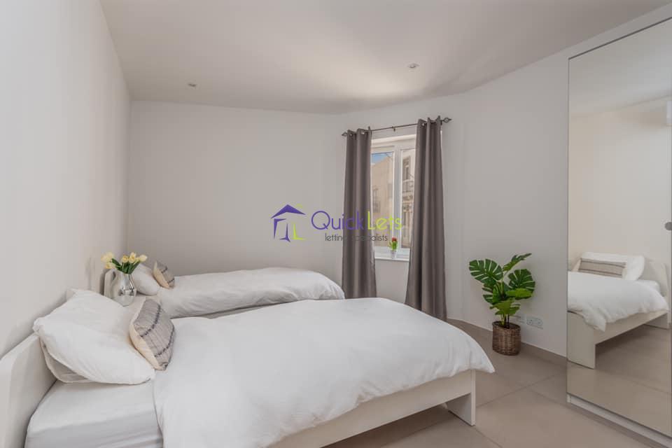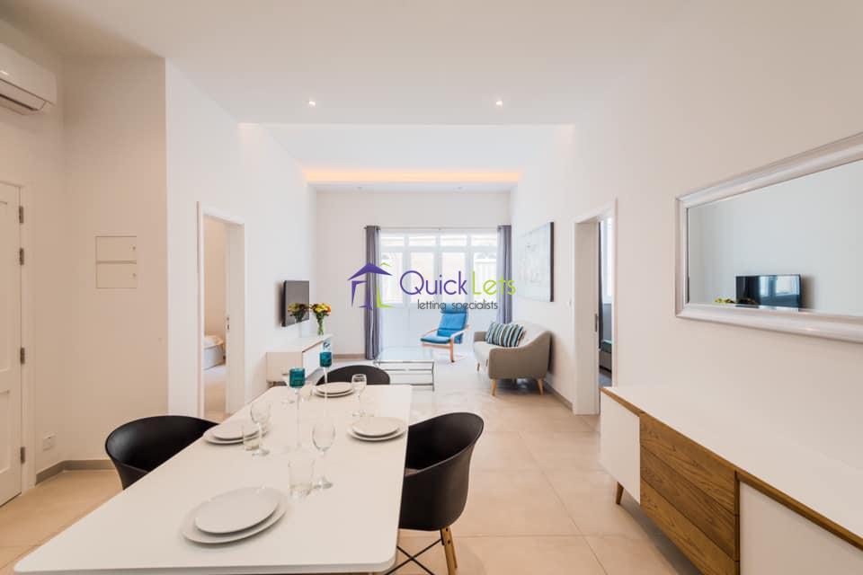 Sliema - A fully furnished modern apartment forming part of a recently converted block located perfectly just off seafront in Sliema. Comprising two double bedrooms, two bathrooms, an open plan with a fully equipped kitchen/living/dining, leading to a traditional enclosed Maltese balcony. Optional car spaces available.