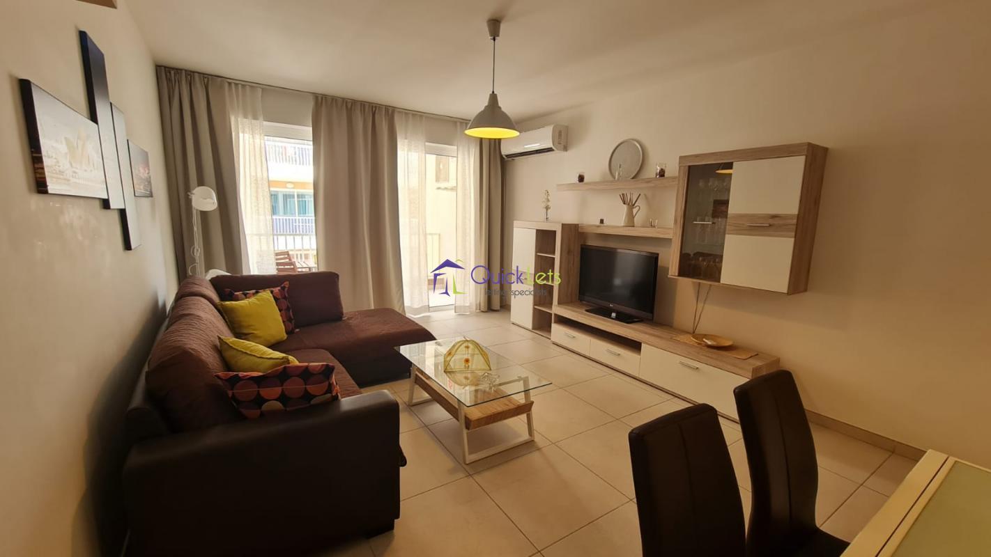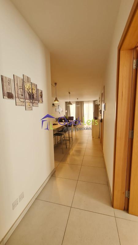 QAWRA - Fourth floor bright apartment in a modern residential complex, comprising spacious and fully equipped open plan coming out on a terrace with outdoor furniture perfect for outdoor seating, large fully equipped kitchen with an island, three double bedrooms, main with en-suite and a balcony, another two double bedrooms, desk space, main bathroom, utility/box room for extra storage space. This apartment comes fully air-conditioned.