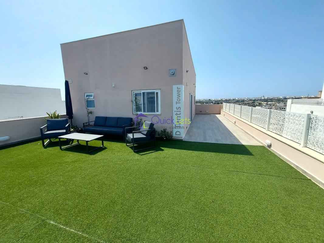 The property is situated in the beautiful village of Zebbug, a quiet residential area yet close to all amenities. The penthouse comprises a spacious open plan with a fully equipped kitchen, a living area with a sofa bed, and a front terrace with outdoor furniture and turf flooring that can be used for entertaining. It has a main double bedroom, a main bathroom, and a spare toilet.