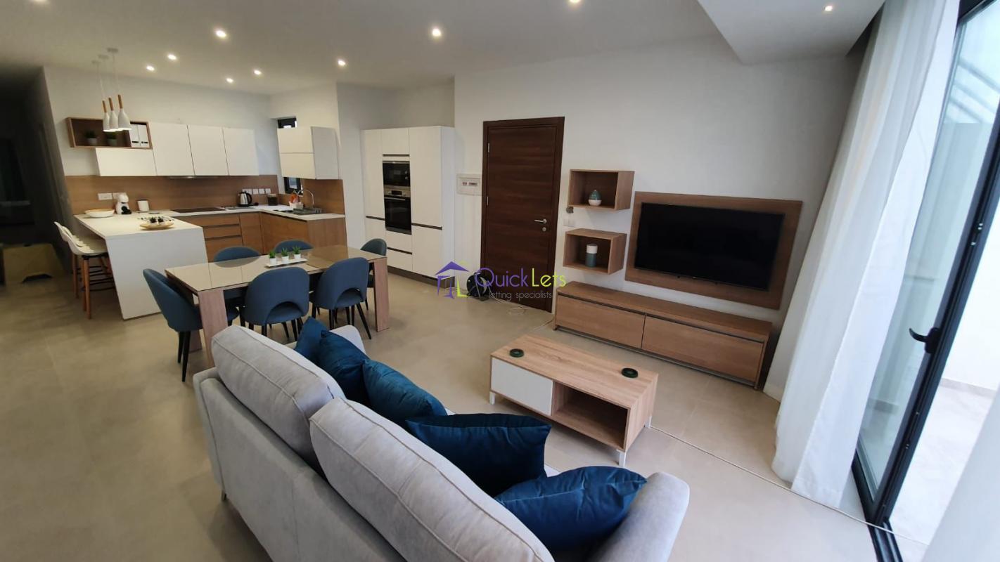 ATTARD - Penthouse located on the 5th floor, property consisting of a welcoming kitchen, living and dining, 2 Double bedrooms, main with en-suit bathroom, guest bathroom, Laundry room, front and back terrace ideal for entertainment. Property is offered fully furnished, fully air con and with an interconnected one car garage. Viewings are recommended !!