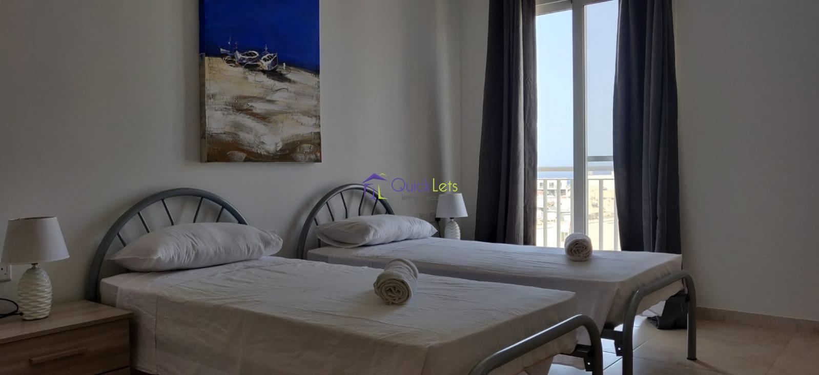 QAWRA - Highly finished three-bedroom Apartment situated in a new residential part of Qawra, minutes away from the seafront and all the daily amenities. The property consists of an open-plan kitchen/living/dining area leading to the three bedrooms and main bathroom, a main bedroom with a double bed and en-suite bathroom, the second bedroom with two single beds & balcony, and a third bedroom with a sofa bed.