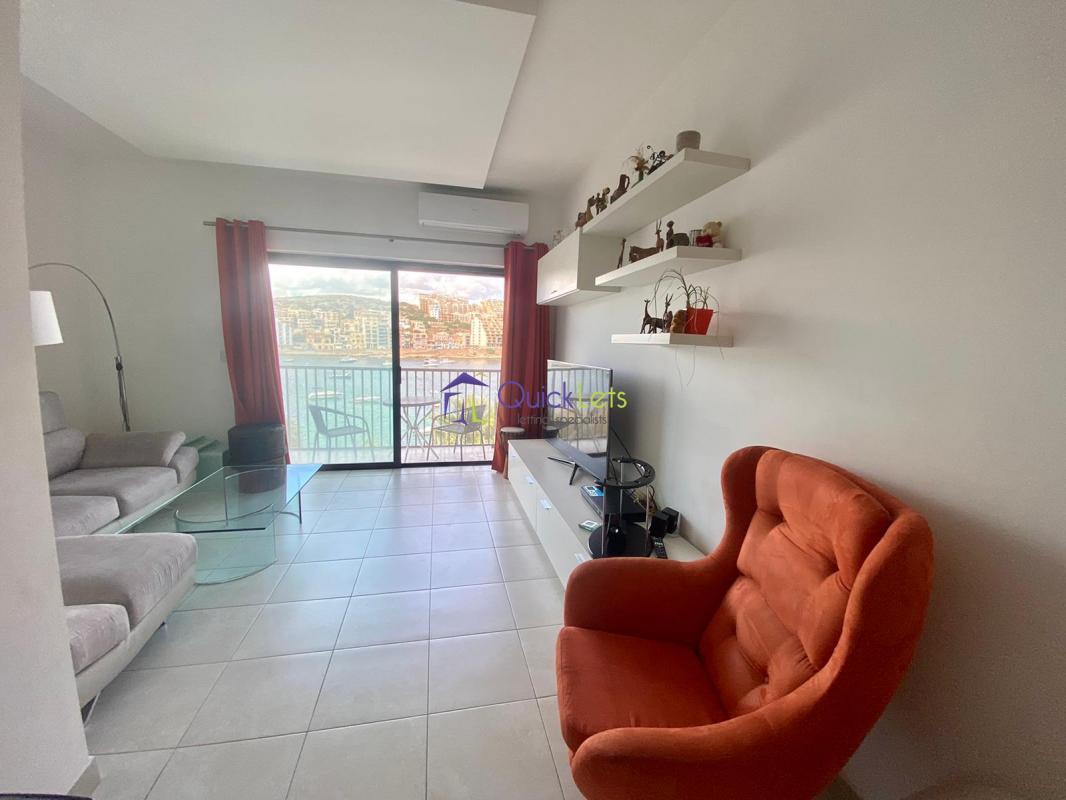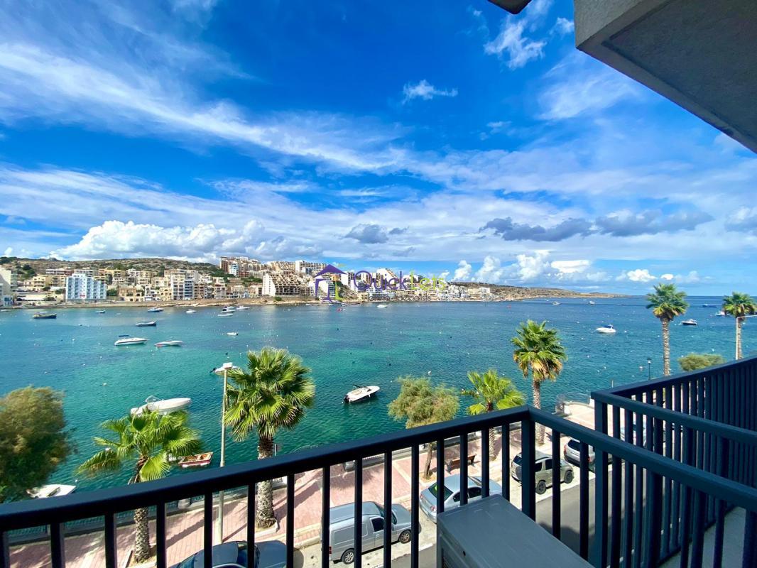 ST PAUL'S BAY - Gorgeous seafront Apartment located on the second floor with a view of Xemxija Bay, close to the beach and all other amenities. The property consists of an open plan kitchen-living-dining area, two double bedrooms, two bathrooms (main bathroom and an en-suite), and a large balcony.