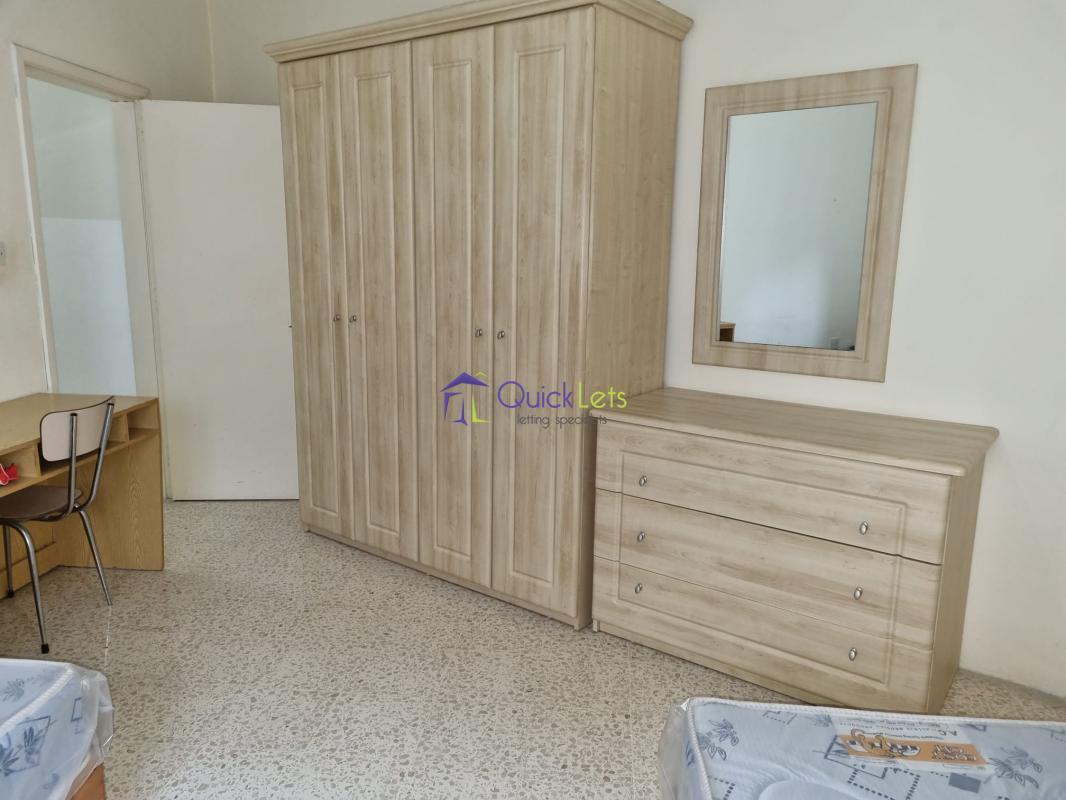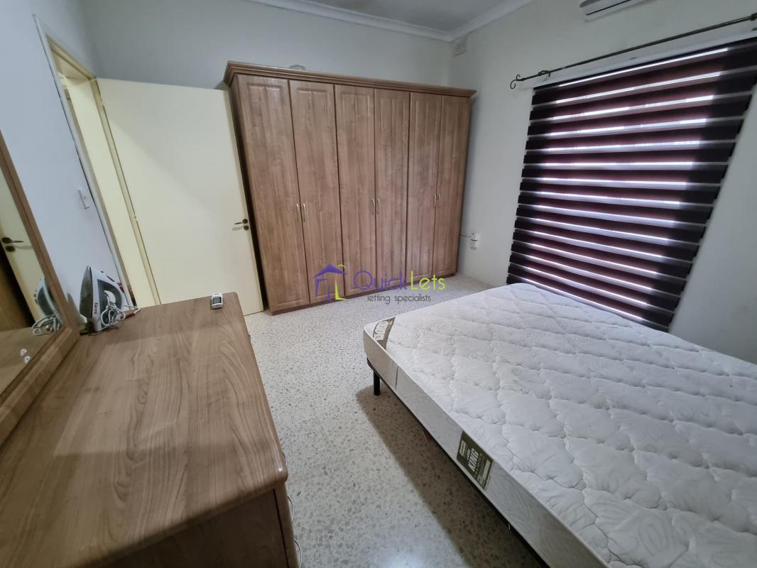 GZIRA - Two-double-bedroom apartment on the second floor (no lift) in Gzira. Comprised of kitchen/living/dining area. Washroom with washing machine, corridor leading to completely new bathroom as owners just changed it. Extra storage room, main bedroom with balcony and A/C, spare bedroom with two single beds. Use of partial roof.