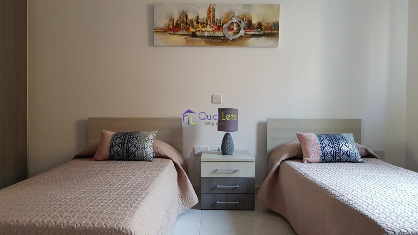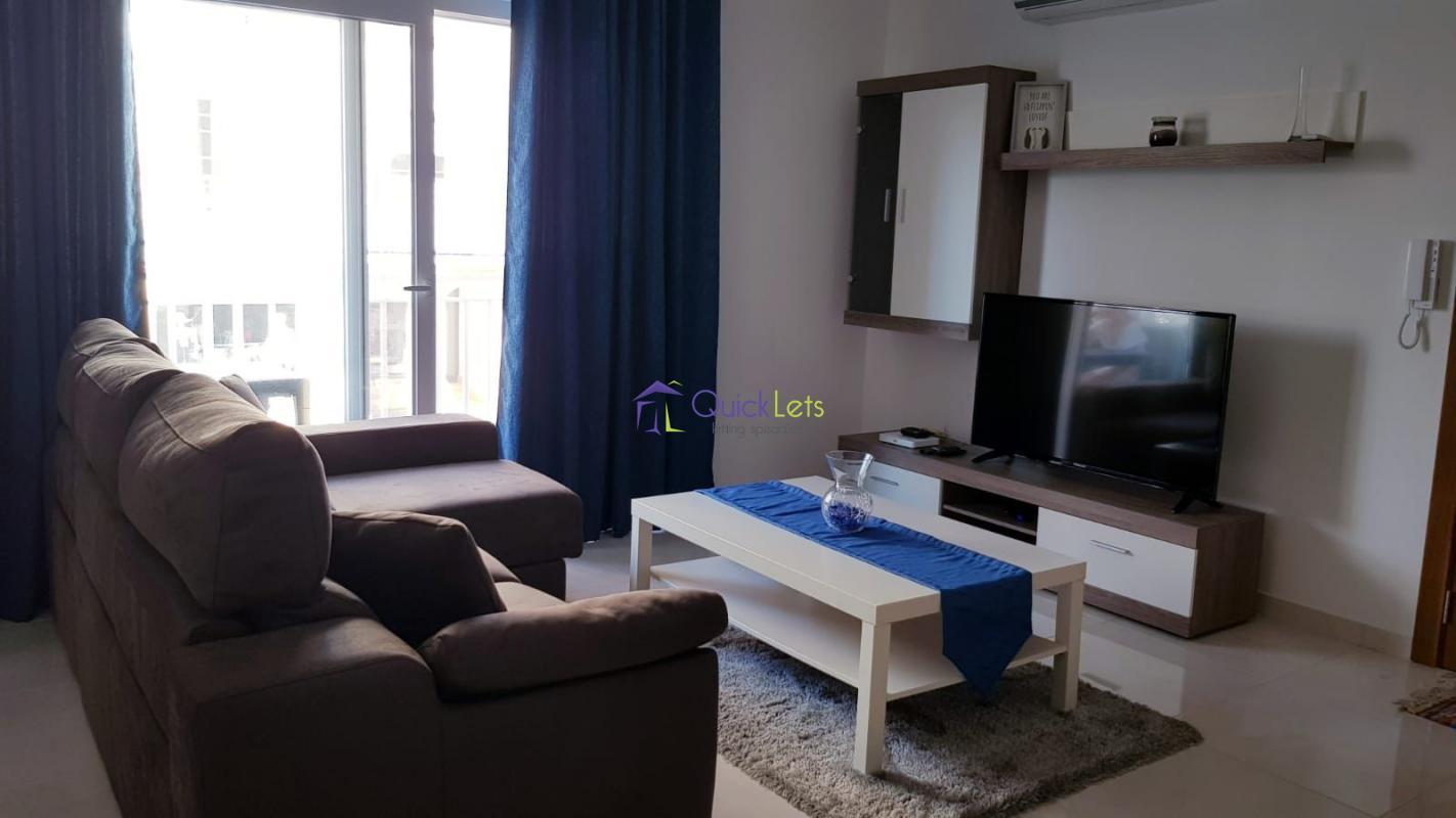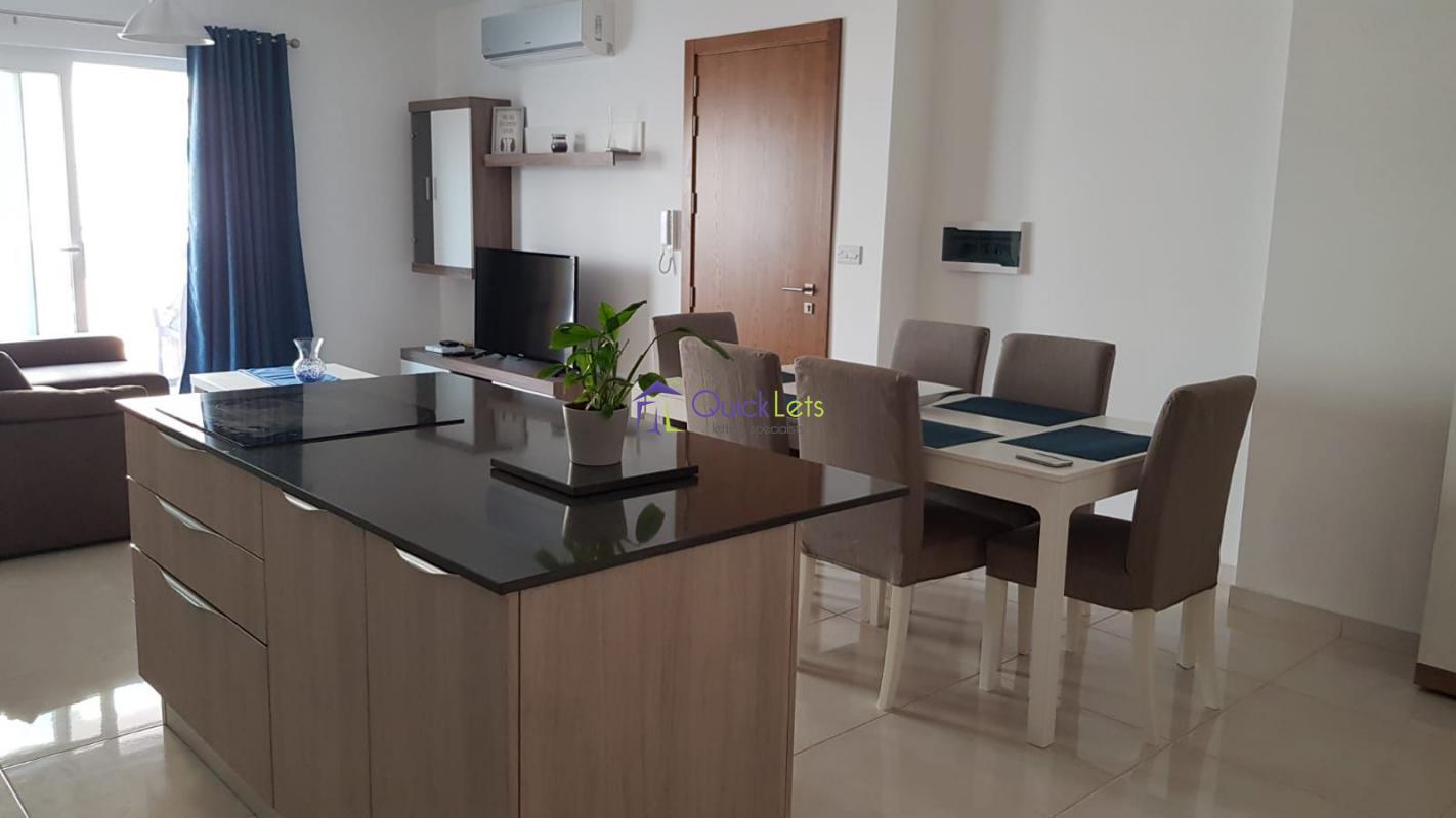 Two bedrooms (one double and 2 singles) and two bathrooms (1 en-suite) modern apartment in a luxury build block, having an open plan kitchen /living and dining leading to a large balcony. Property is fully equipped with Dishwasher, Washing Machine, Air Conditioning, Utility Room and more.
