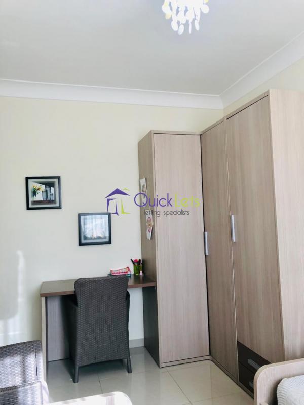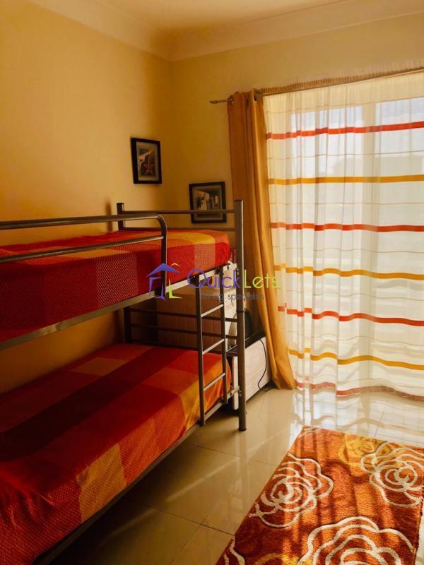 Qawra - Spacious three bedroom apartment in a new block. This property was designed with an open plan concept consisting of kitchen/living/dining room area which gives access to a rather large front facing balcony where meals could be enjoyed outside. There are three spacious bedrooms, including the master bedroom which is equipped with a double bed and benefits from its own en suite bathroom. The second bedroom is set up with 2 single beds and a corner home office area. The final bedroom comes with bunk beds, ideal for family with kids. It also includes a guest bathroom, a utility room and a good size back balcony, accessible from one of the bedrooms. It’s is fully equipped, including two ac units (in the open plan and master bedroom), dishwasher and TV. A internet and TV subscription is already set up and it’s ready to move in!