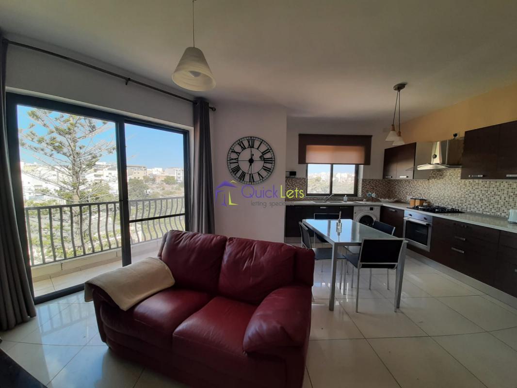 This two bedroom corner apartment in Mosta is ideal for those who like to have all of the creature comforts of home. The open plan kitchen/living/dining area provides plenty of space and light, while two front balconies offer a stunning view of the valley. The two double bedrooms and a back balcony provide extra space and natural light. A guest bathroom and easy access to all amenities make this property pet-friendly and incredibly convenient.