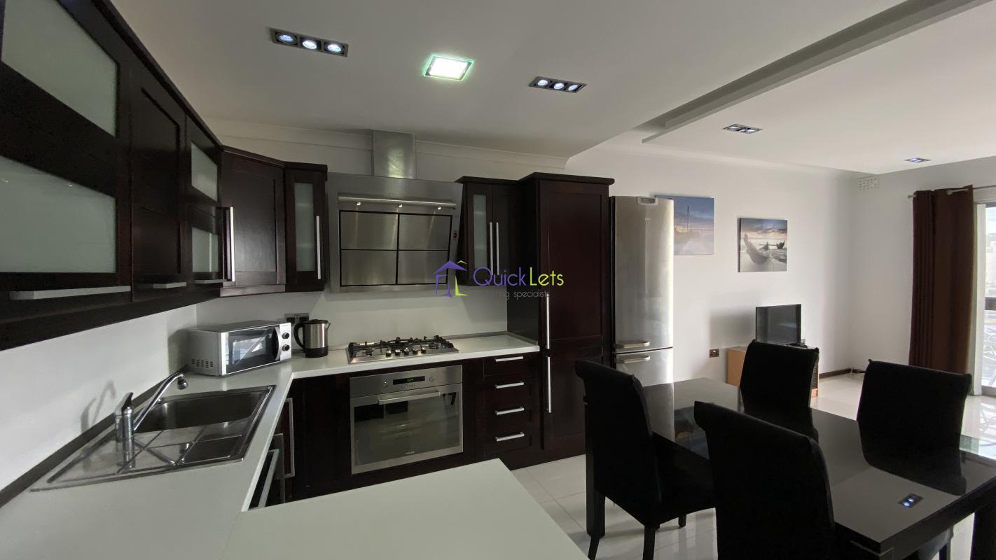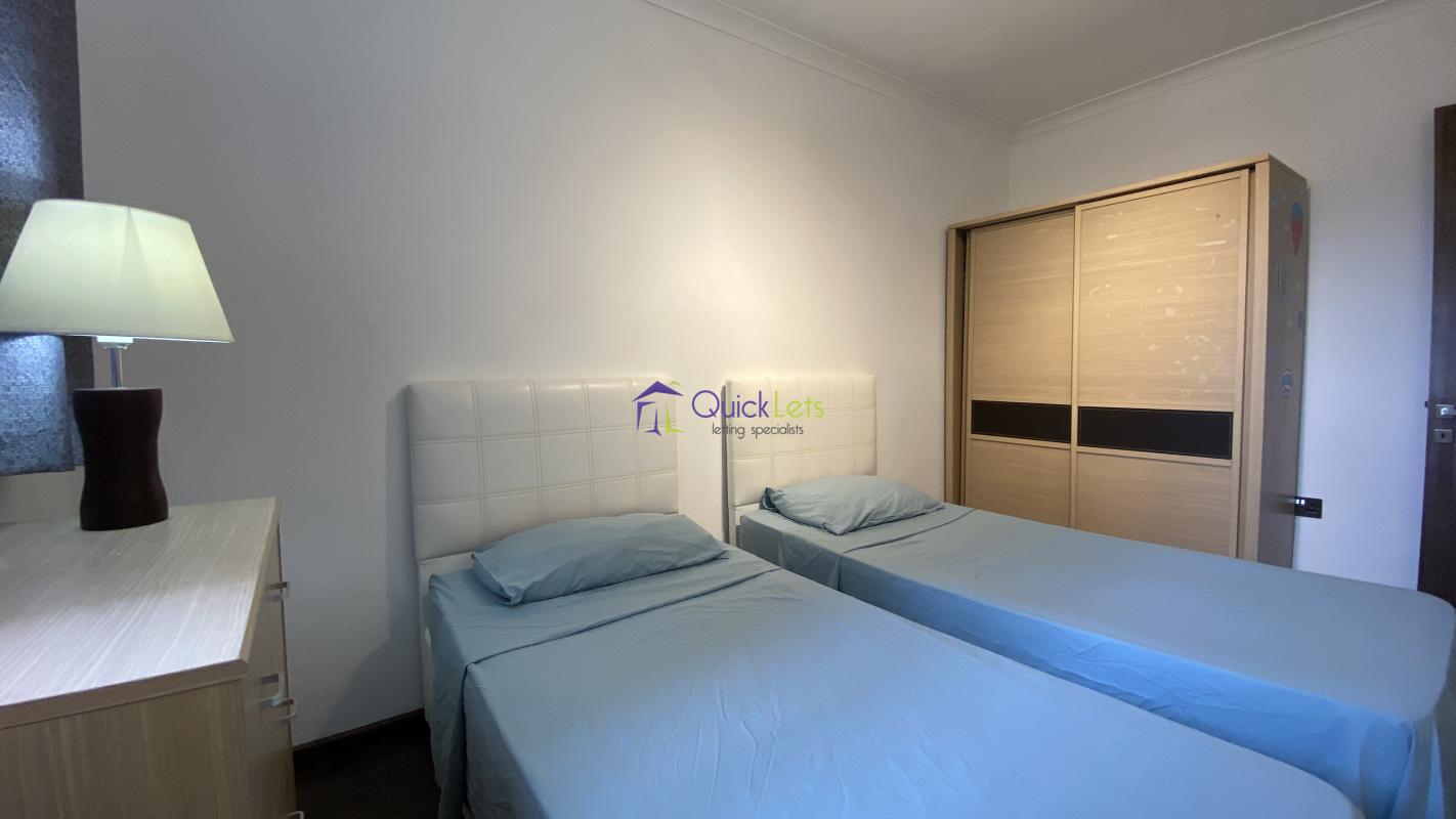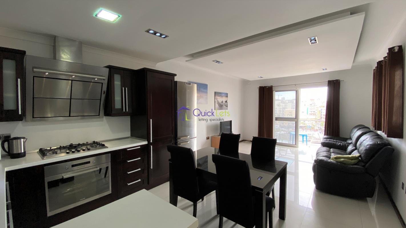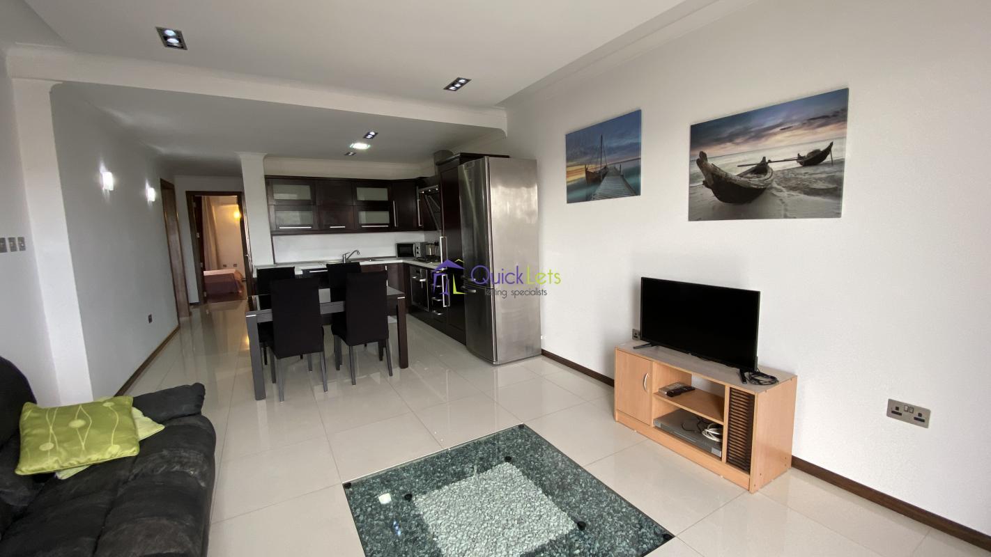 MARSASKALA - A modern two-bedroom apartment located just a few minutes walks away from Marsaskala promenade. Located on the 2nd floor. The layout comprising of an open plan kitchen/living/dining area leading to a balcony with a canopy having sea views, two double bedrooms with storage beds (one bedroom with a walk-in wardrobe), the main bathroom with a bathtub. This apartment is fully furnished and equipped with brand new Bosch appliances in the kitchen including a dishwasher, washing machine and tumble dryer. There is an A/C in the main bedroom.