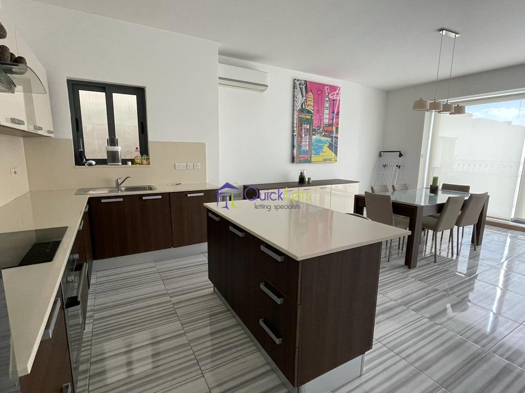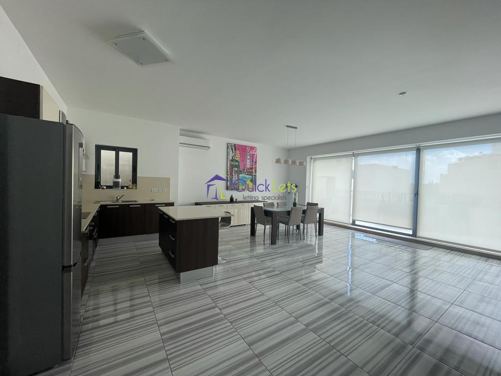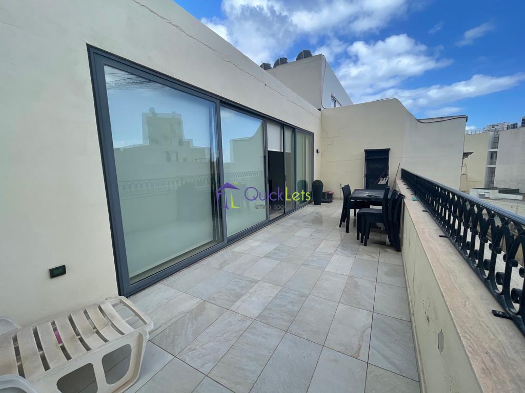 SLIEMA - A well lit finished three bedroom penthouse situated in a sought after area of Sliema, walking distance to the promenade and close to all amenities including cafe's, retail shops and restaurants. Layout comprises a spacious open plan fully equipped kitchen with breakfast table, living and dining area leading to a large front terrace ideal for entertaining. Three double bedrooms (main with en-suite shower), main bathroom with bathtub and a utility room. A Car space is also included and served by lift.