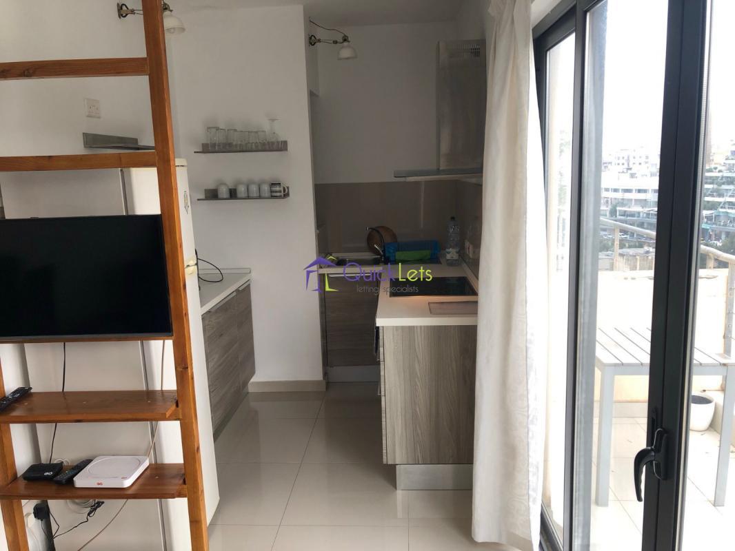 ST JULIANS- Onebedroom penthouse in St Julians. The penthouse consists of one bedrooms, one bathrooms, kitchen, living, dining, terrace. The penthouse is fully furnished and airconditioned, with washing machine and LCD TV.