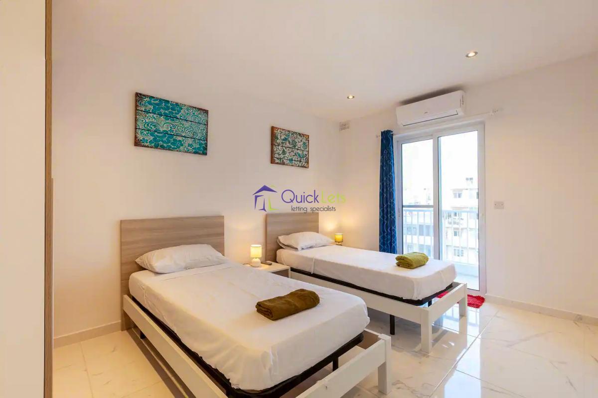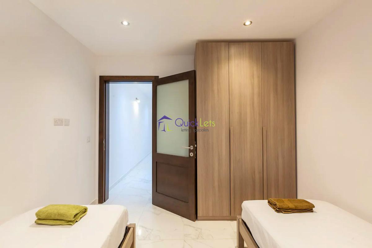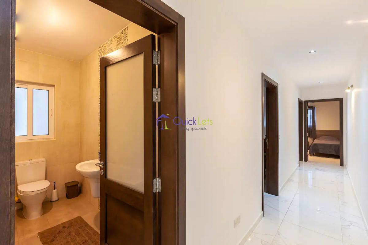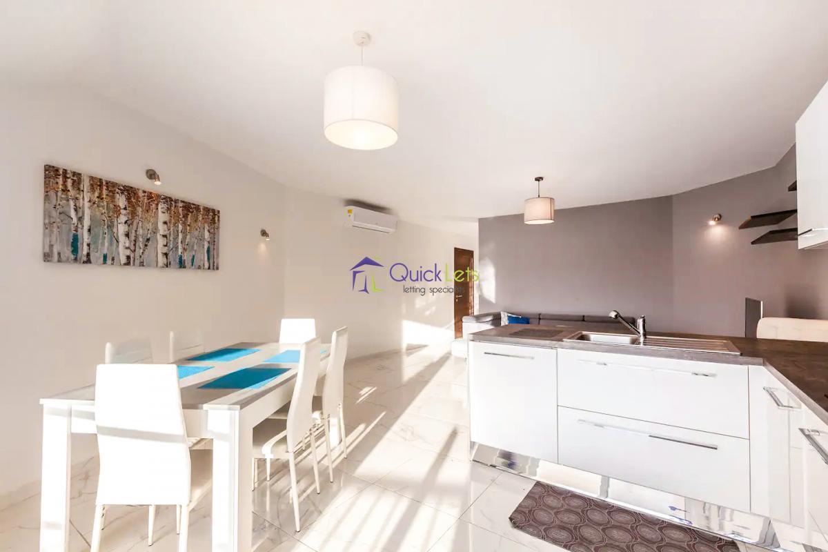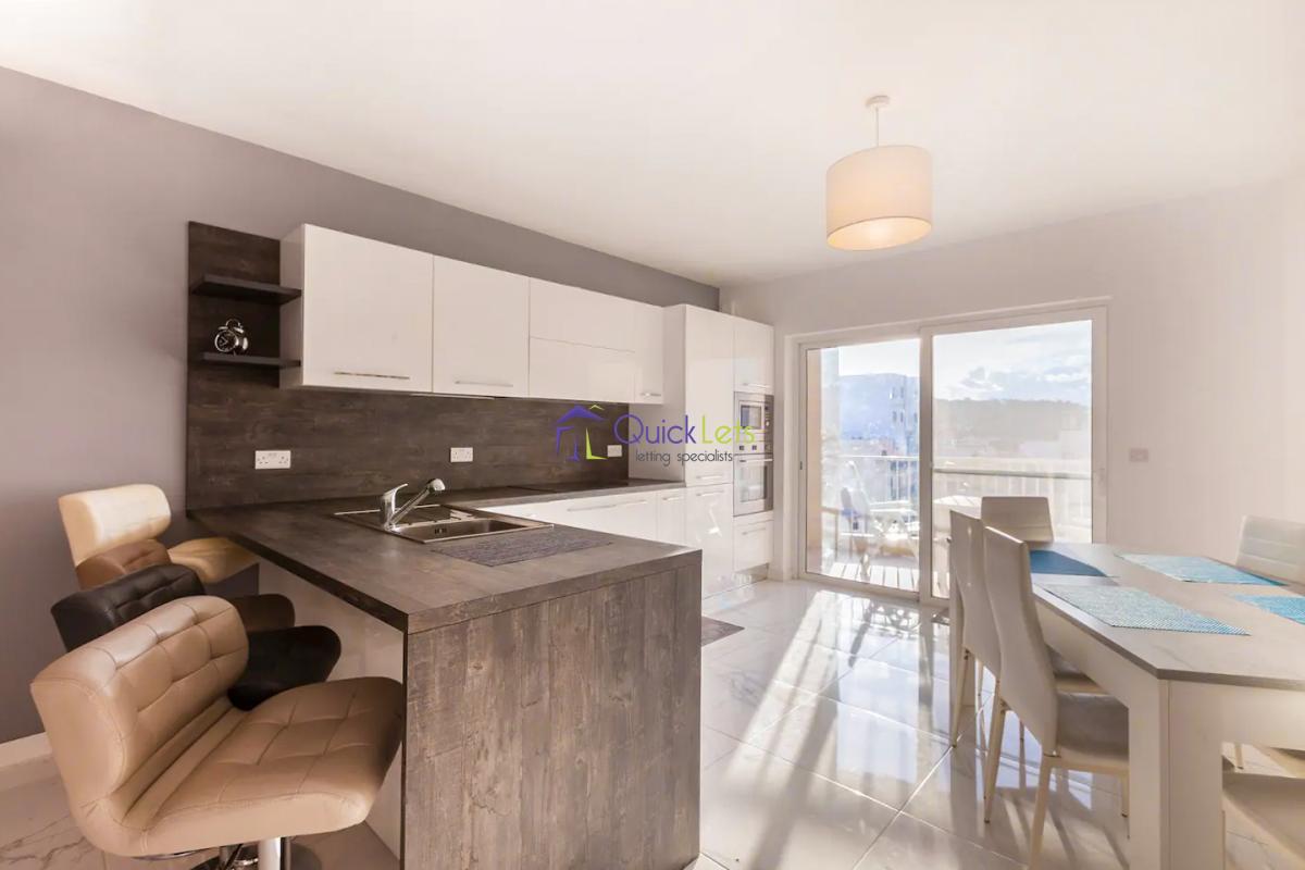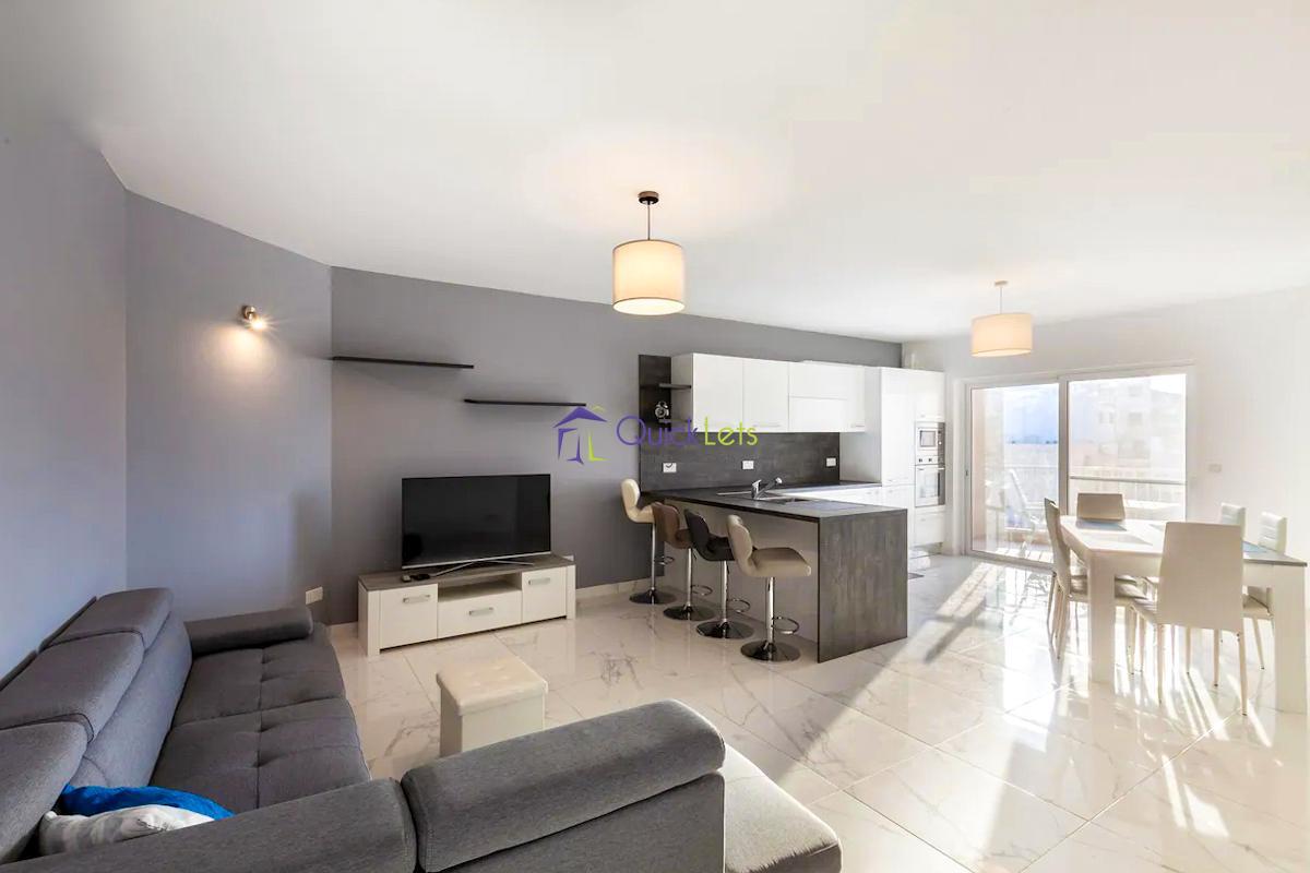 ST PAUL'S BAY - Ultra modern three bedroom apartment, part of a modern residential block and perfectly located in a quiet area yet close to all daily amenities, bus stop, the square and the beautiful Promenade. Consist spacious open plan kitchen/dining/living leading onto large balcony, enjoying open views. Main bathroom, three bedrooms where main is with an en-suite shower, large back balcony. Served with a lift and fully equipped.
