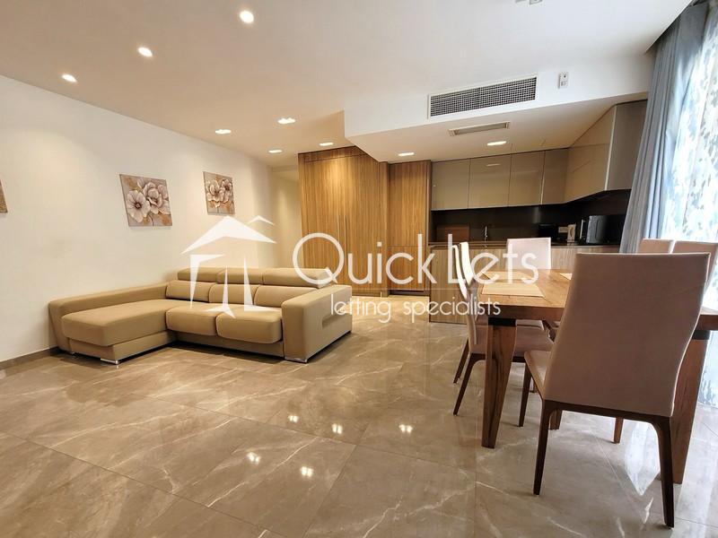 ST. JULIANS - Brand new third floor apartment, served with lift, finished to high standards in December 2021. This lovely property features a large, open plan kitchen, living and dining area, leading onto a terrace with outdoor furniture and enjoys sea views and Balluta views.
