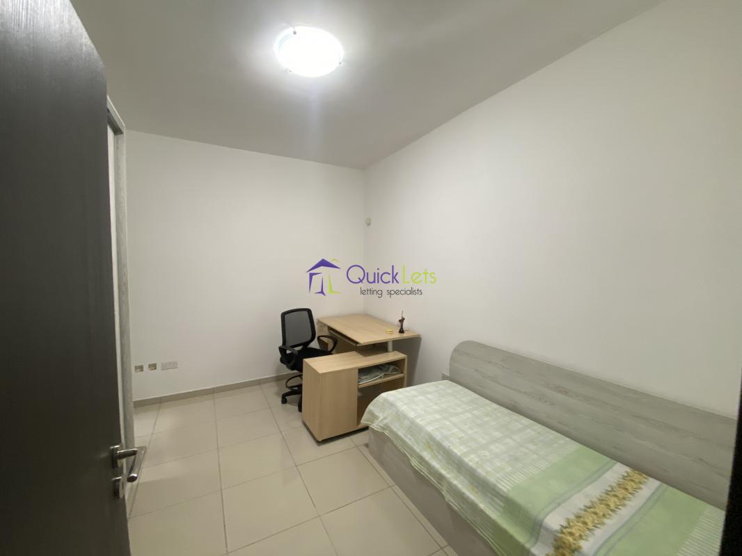 The property consists of a 2 bedroom apartment. As soon as you enter you find the main bedroom with ensuite on the left. Then along the corridor, you can find the main bathroom , the second bedroom with a desk to use as study and a small internal balcony.