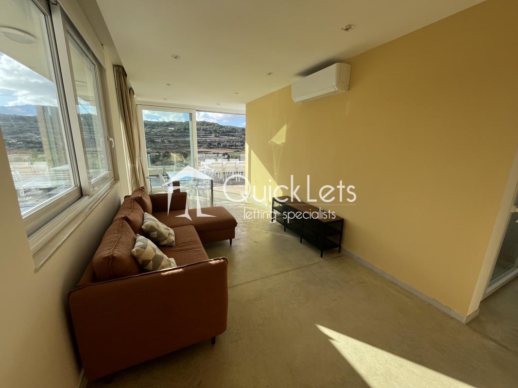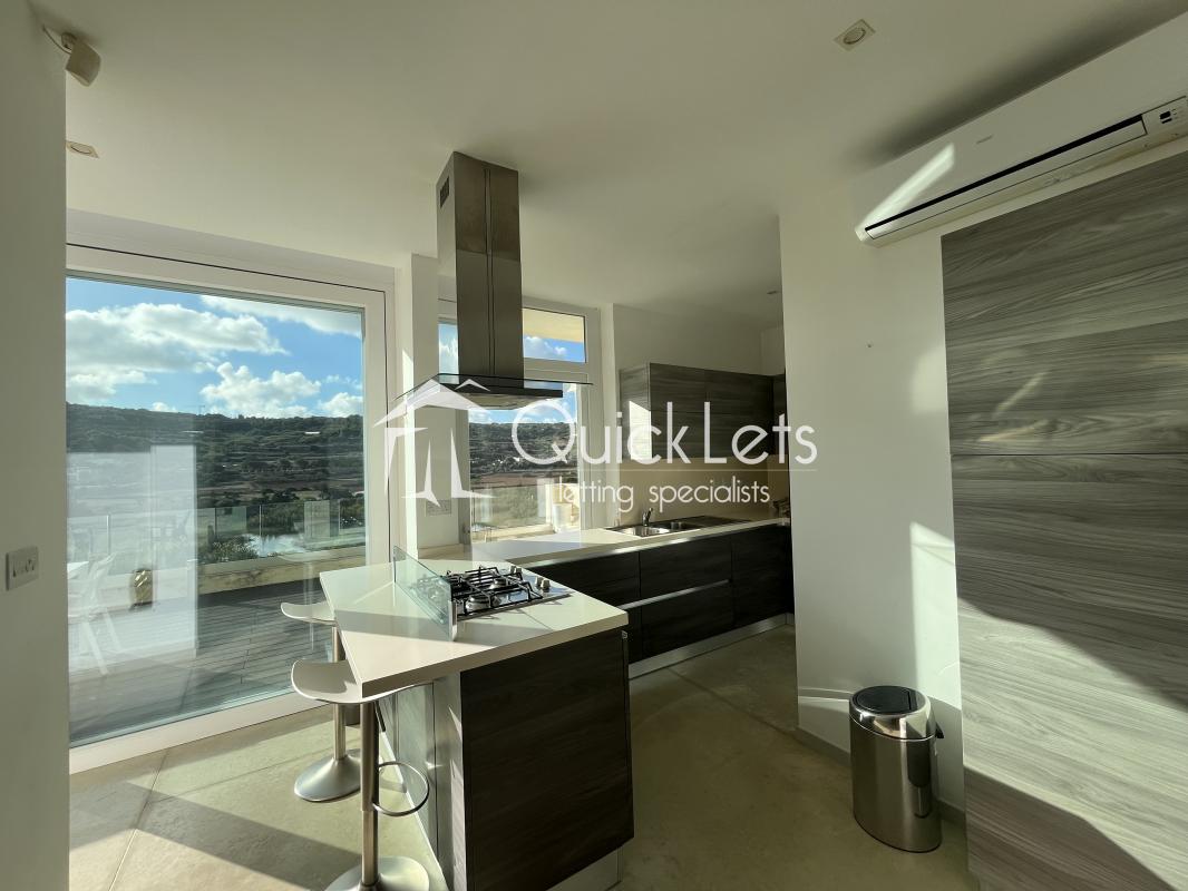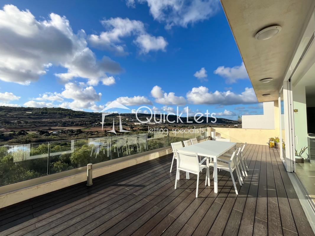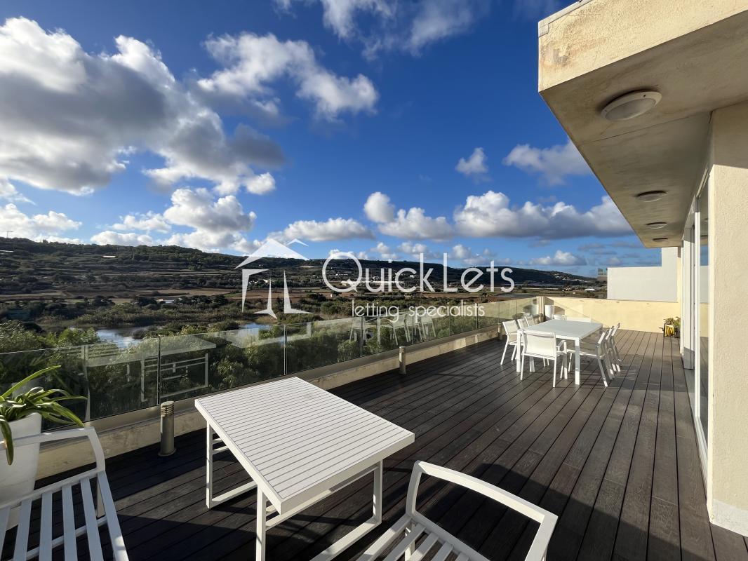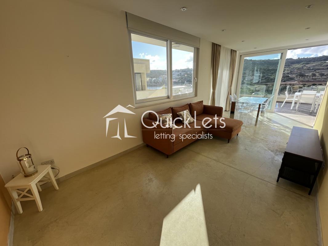 XEMXIJA | A stunning, highly finished Penthouse situated just off the seafront in Xemxija enjoying fantastic sea and country views. Property has direct lift access, opening onto a living-dining-kitchen area and leading onto a spacious terrace. There are three terraces in total all with views and having lots of natural light throughout. The main double bedroom comes with an en-suite, a second bedroom that can also be used as as study, and there is also a main bathroom. Fully equipped with all necessary appliances and close to all amenities.
