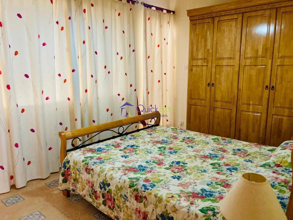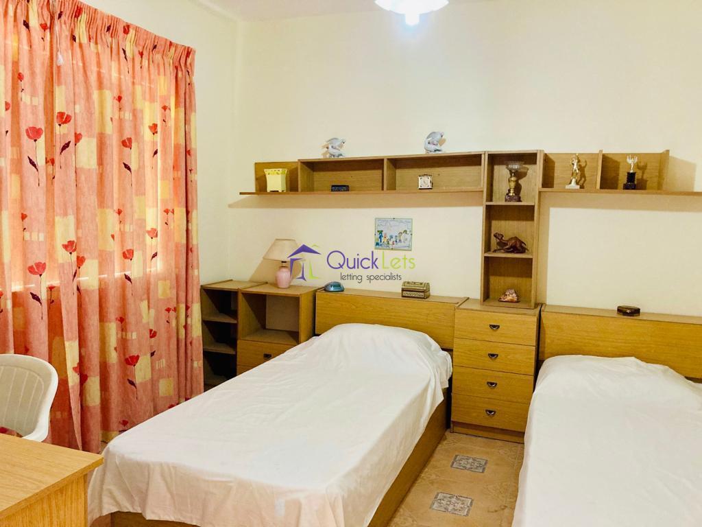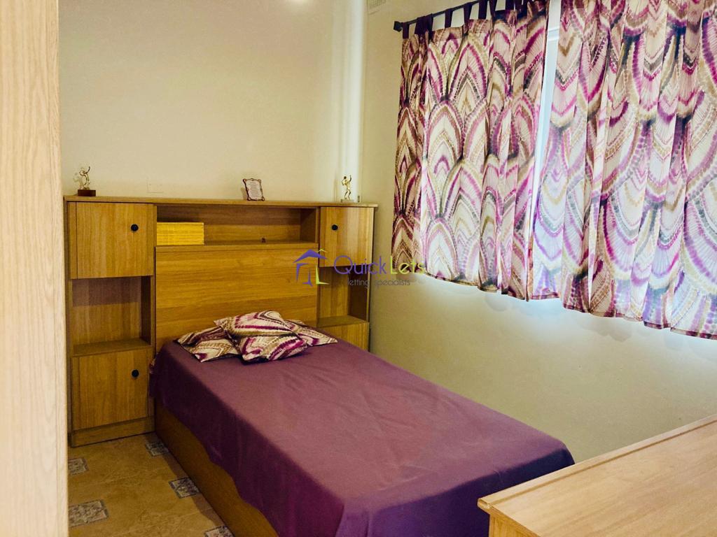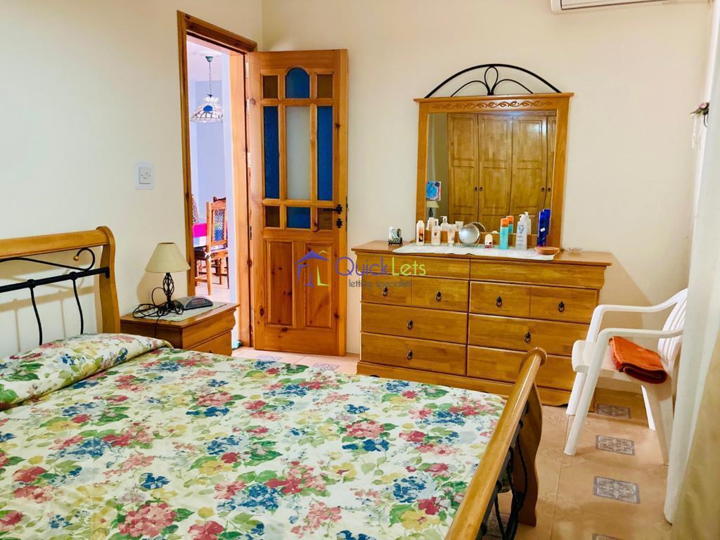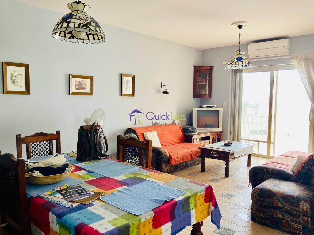 QAWRA - Here we have a three bedroom maisonette in Qawra. Have an open plan kitchen/living/dining area leading to the front balcony. Main double bedroom with en suit shower, second bedroom with two single beds and the third bedroom with single bed, guest bathroom, AC and whole roof. Close to all your daily amenities.