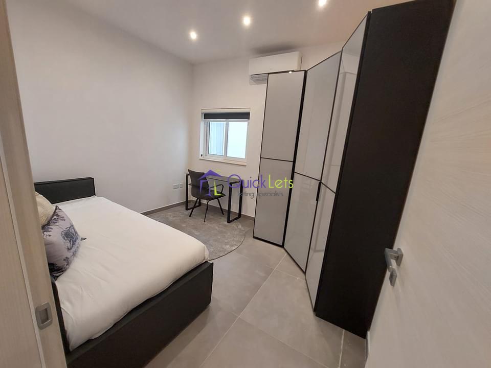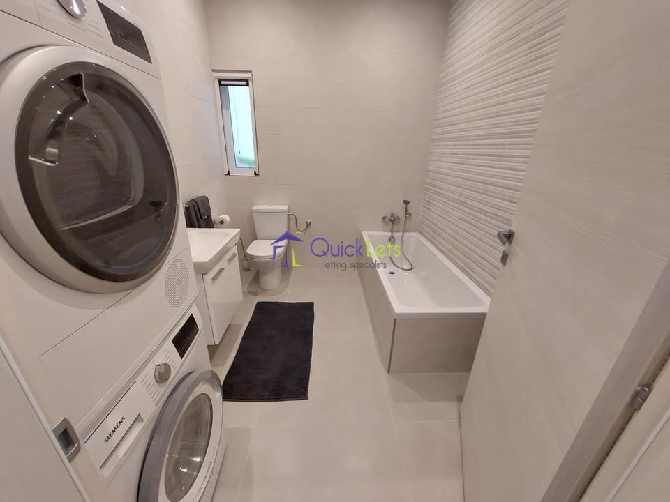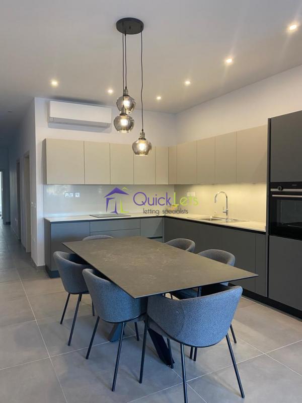 BALZAN (B'KARA) - A large and beautifully finished three bedroom apartment. An independent entrance with front yard leading onto a bright open plan kitchen, living and dining room with a fully equipped kitchen with state of the art Siemens appliances. A main bedroom with washing machine and tumble dryer. One of the spare bedroom has a single bed with the possibility of becoming a twin room. The other two bedrooms are doubles and the main bedroom has an ensuite bathroom and a back terrace suitable for entertaining.