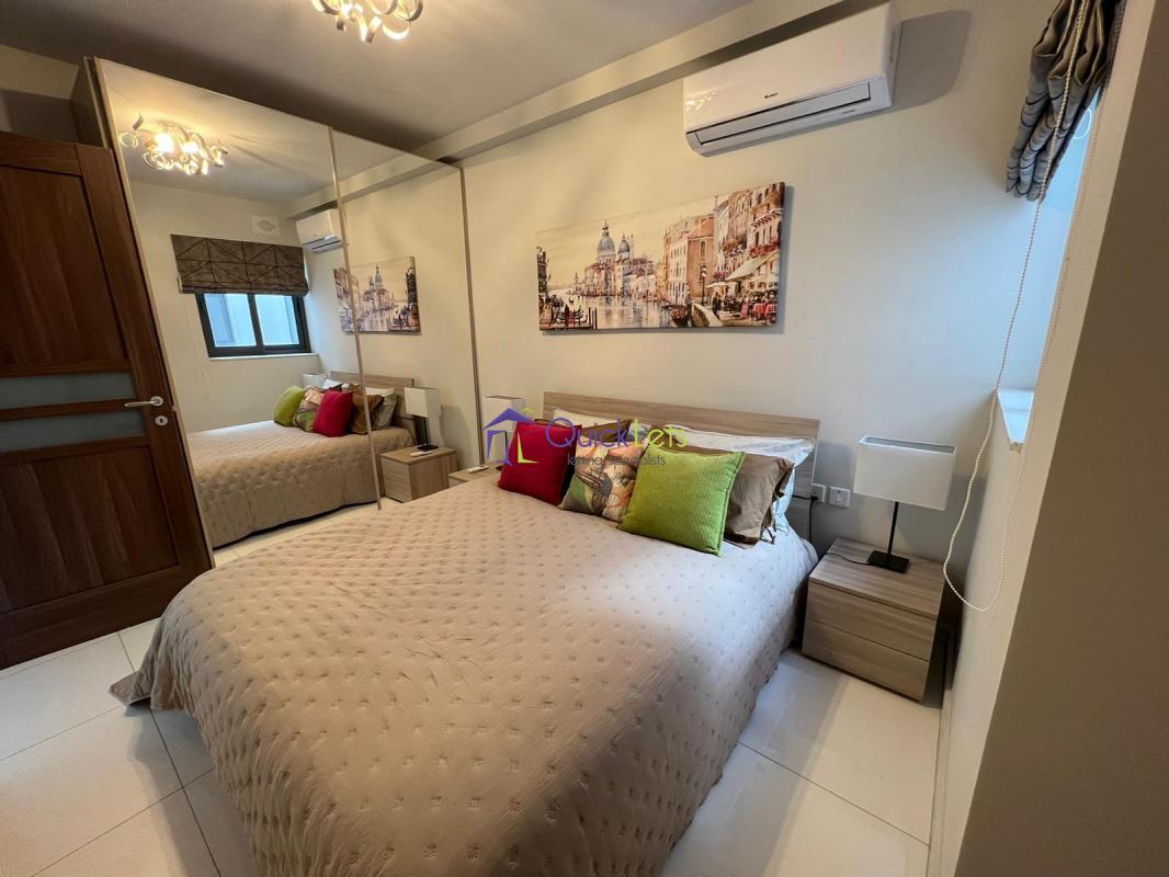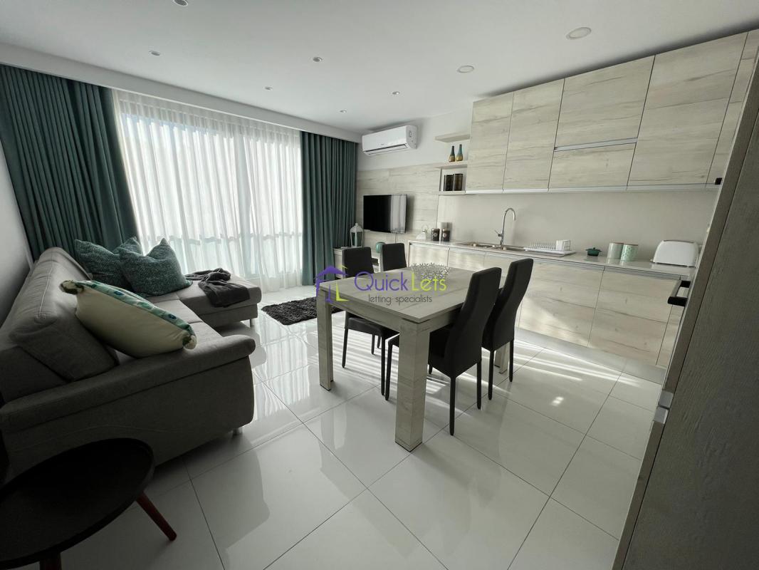 QAWRA - Here we find a brand new (2022) highly finished apartment in the heart of Qawra, just a few steps from the seafront and all the amenities this town has to offer. It comprises a large open-space kitchen-living-dining, fully equipped with dishwasher and washing machine/tumble dryer, a large LCD TV and a beautiful three-seater sofa. The hallway leads onto the bedroom (with a double bed and two spacious wardrobes) and the bathroom with a shower. Served by lift and fully AC'ed. Viewings are highly recommended!