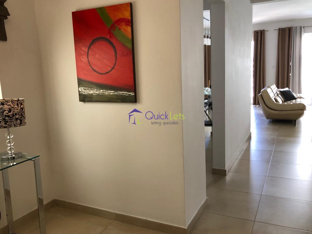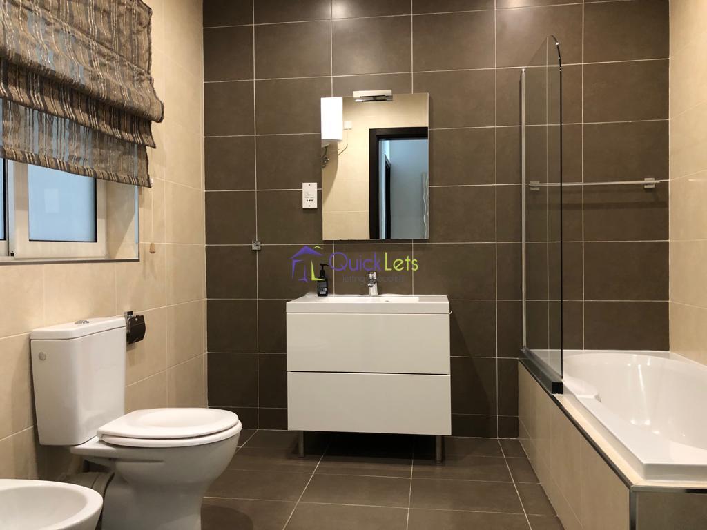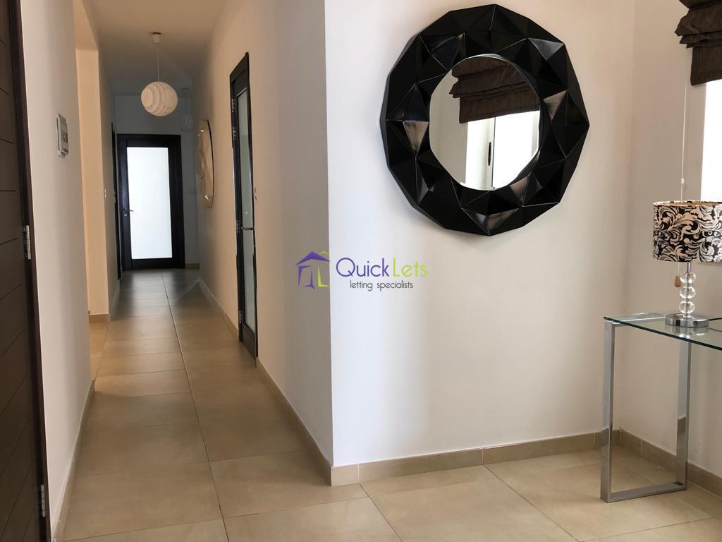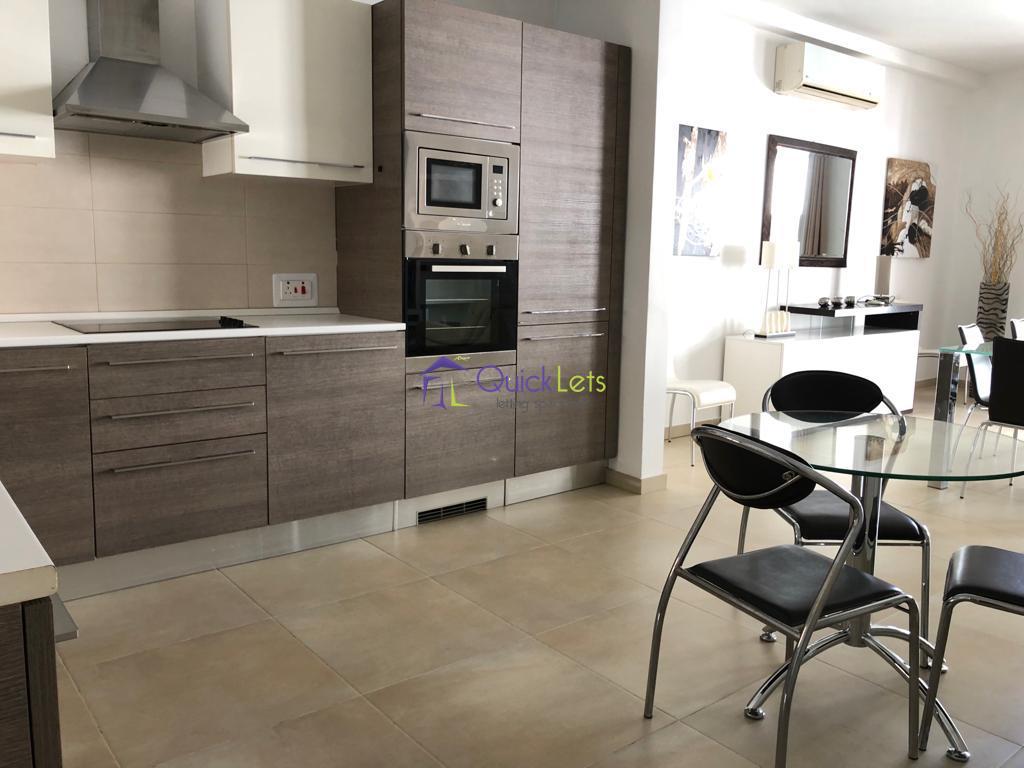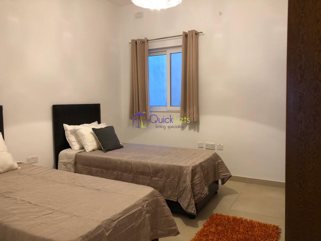 SLIEMA - modern cosy three bedroom apartment, situated in the heart of area close to the sea, kids playground, promenade, large shopping mall and all amenities for your convenience. Very spacious, with open plan kitchen living dining leading to the long front balcony facing the town. Two bedrooms are with double beds. Property complimented with a study room, utility room, back balcony and two bathrooms (one is ensuite). Fully equipped and air-conditioned. Must be seen to be fully appreciated !