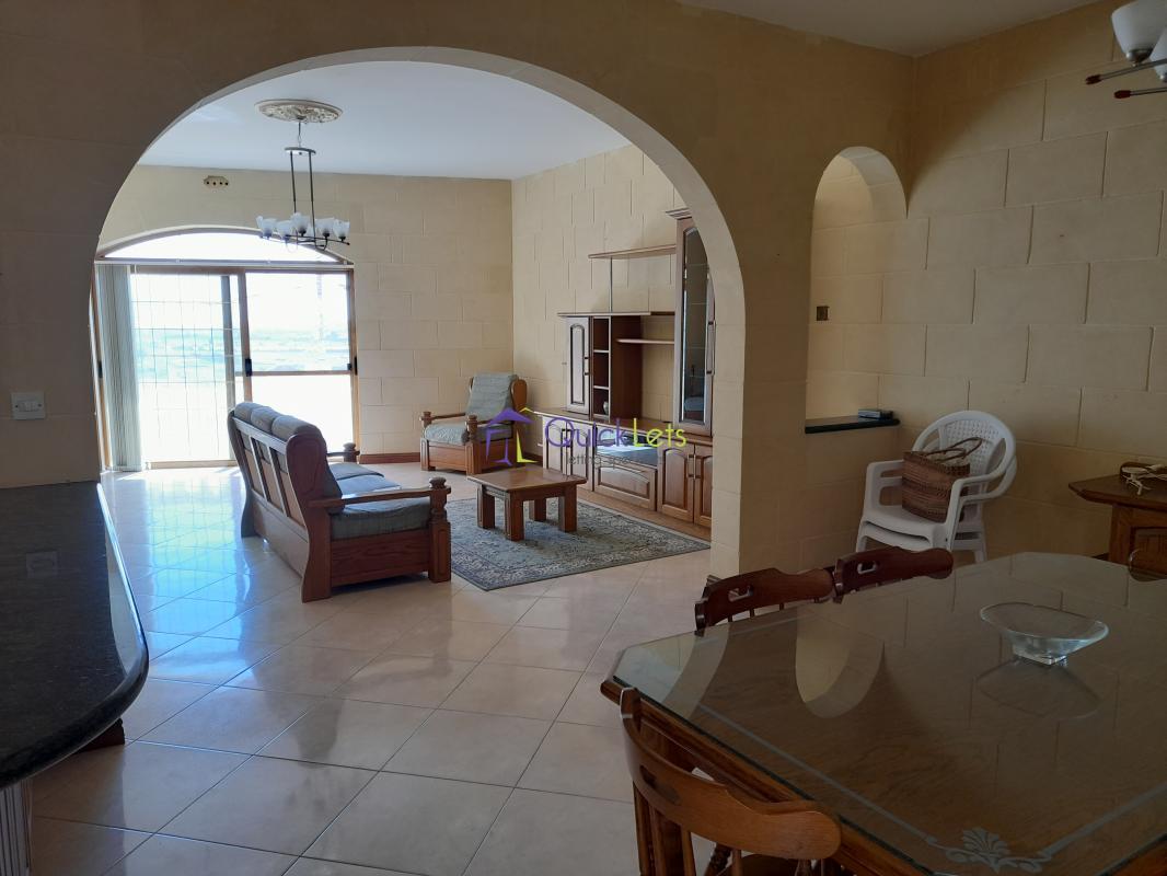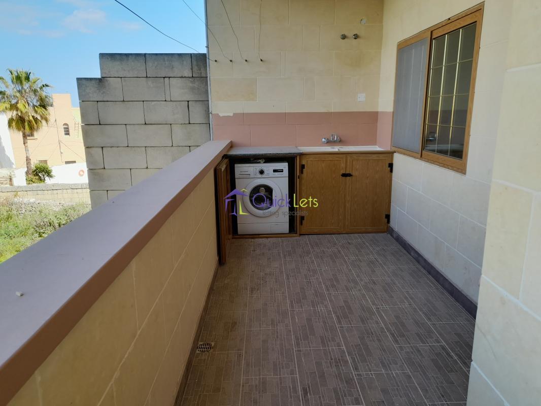XAGHRA, Gozo - In a small block of only two apartments this larger than a usual three-bedroom apartment includes a large kitchen/dining and living area and a bathroom, there is a front balcony with a distant sea view, a back terrace big enough for outside dining, there is an inner courtyard big enough for a table and chairs, there is also an extra room which could be a box room a small office, double glazing throughout, this immaculate apartment is very large and ideal for a family, on the first floor with no lift, and no pets all.
