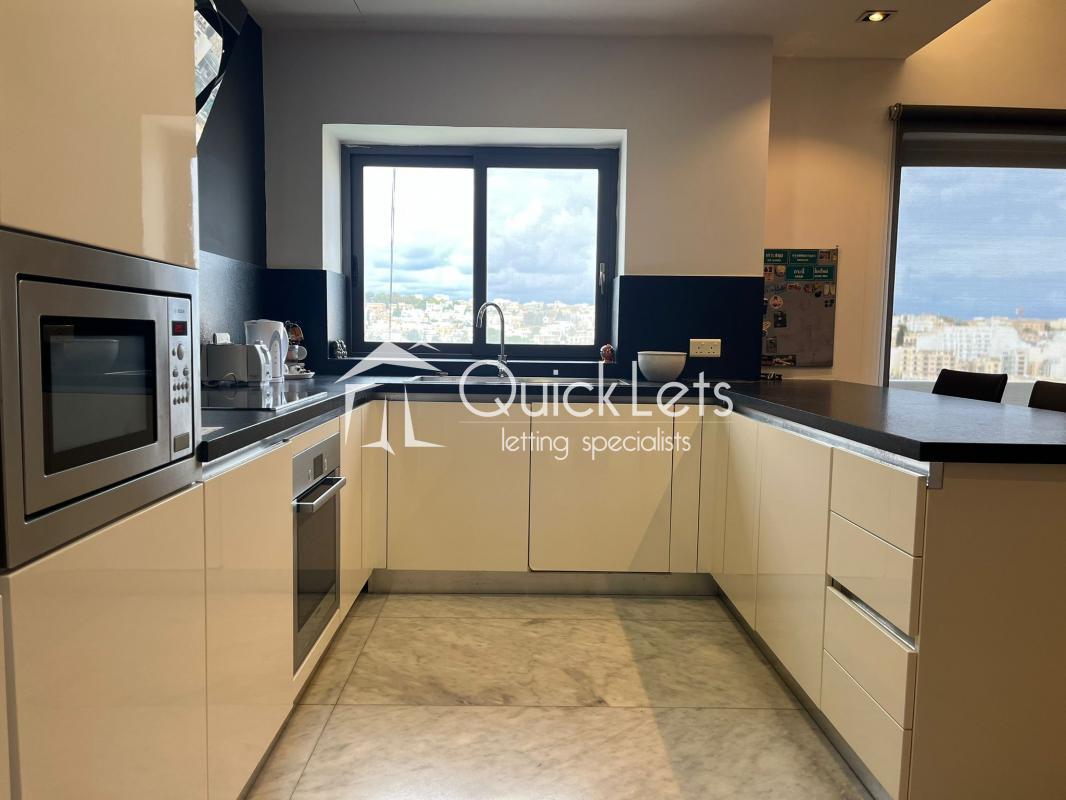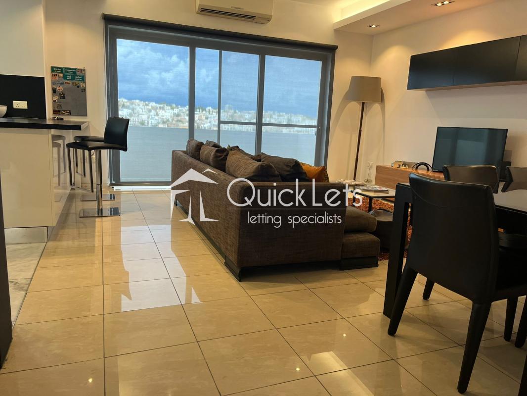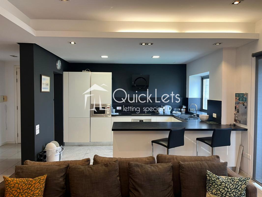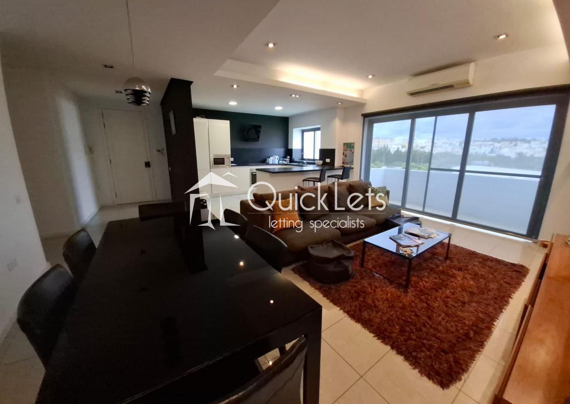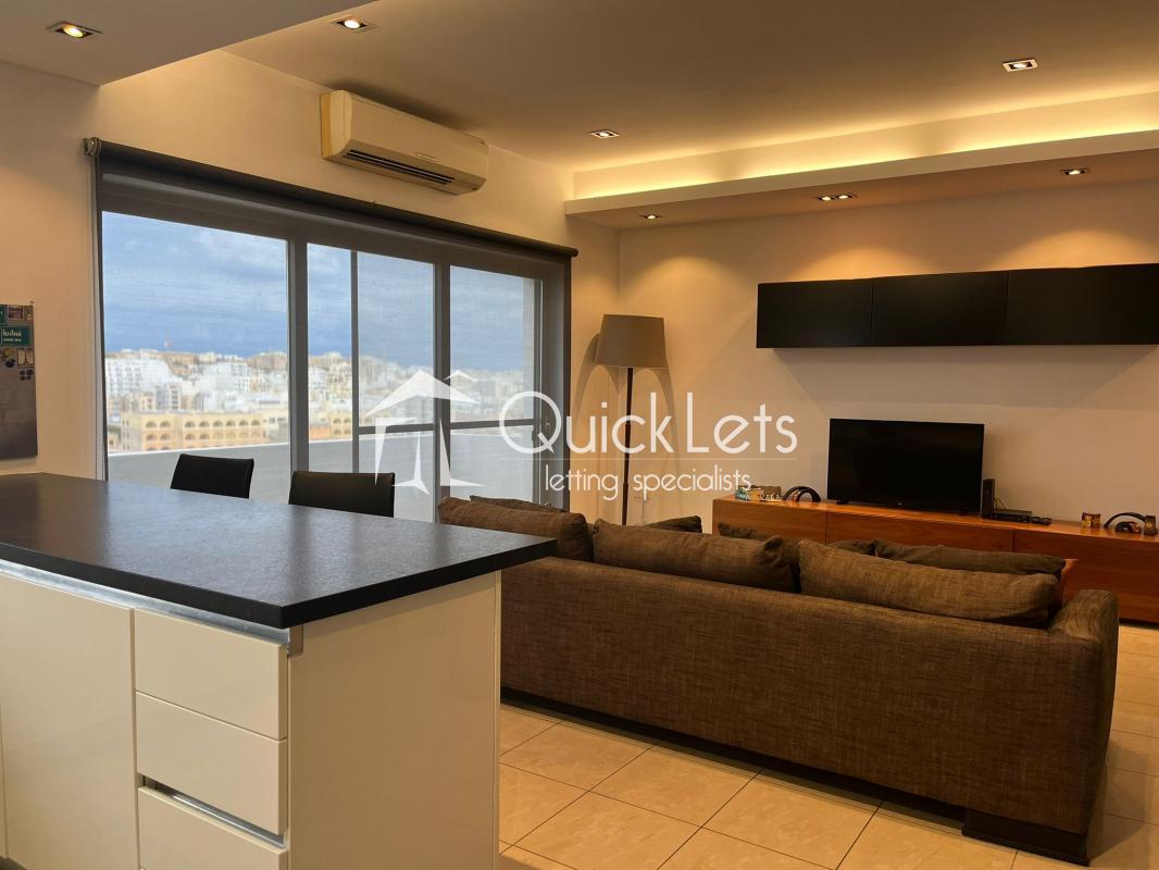 MSIDA - A spacious modern, top-floor two-bedroom apartment with unobstructed town views. Layout comprises an open plan, fully equipped kitchen/living/dining, small balcony, two bedrooms (main with en-suite), and the main bathroom. The property is furnished to high standards, includes part ownership of the roof, and is close to all amenities.