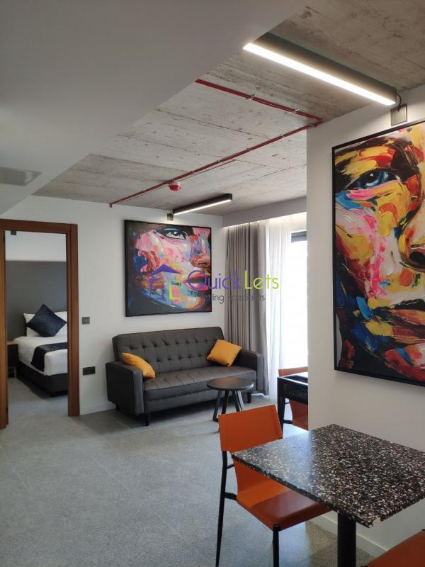 The apartment comprises an open plan kitchen/living/dining, one double bedroom, and one bathroom. The Suite is fully AC’ed and features a 50-inch LCD TV, a fully equipped kitchen with fridge/freezer, induction hobs, oven, coffee machine, and all the appliances and utensils one might need. Luxury finished bathroom with shower. Small balcony (approximately 6sqm) facing an internal yard. Car Spaces are available at levels -1 and – 2.