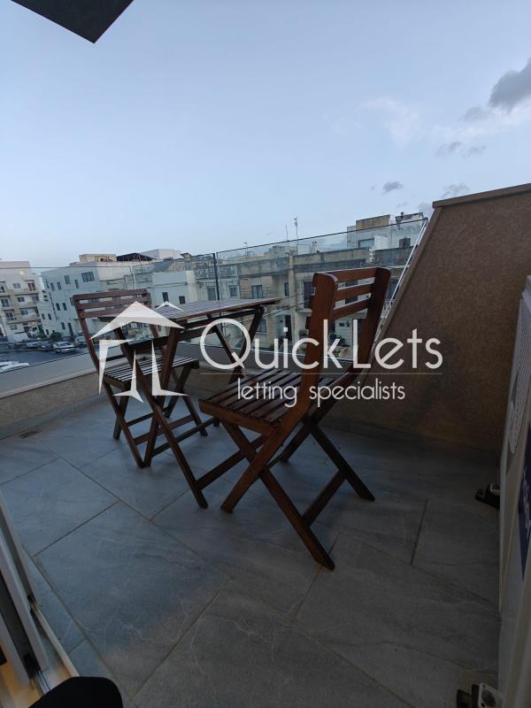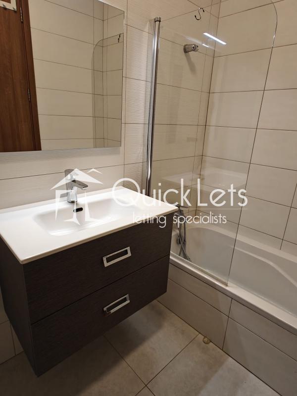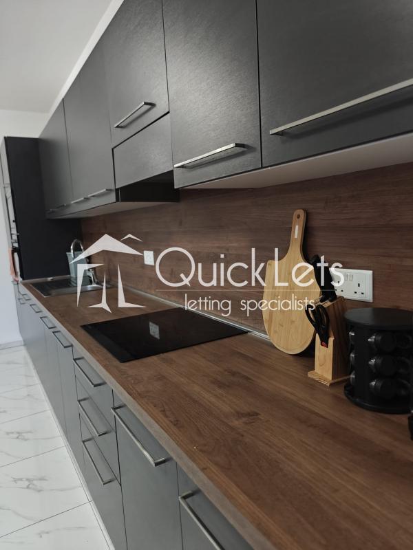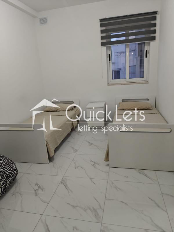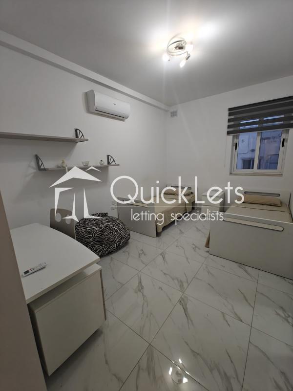 The apartment offers a well-planned layout with a double bedroom with ensuite bathroom, a second bedroom with two single beds, a main bathroom, and a practical box room for extra storage. A rear balcony provides additional outdoor space and ensures excellent natural light and ventilation throughout.