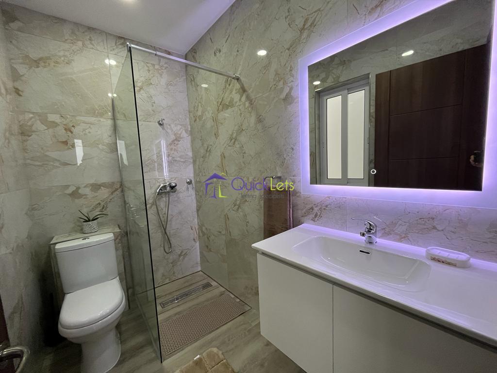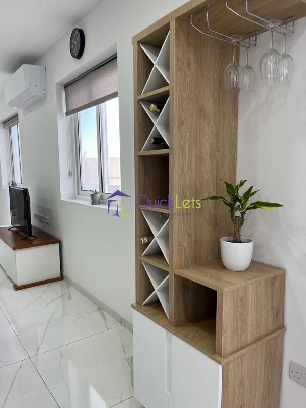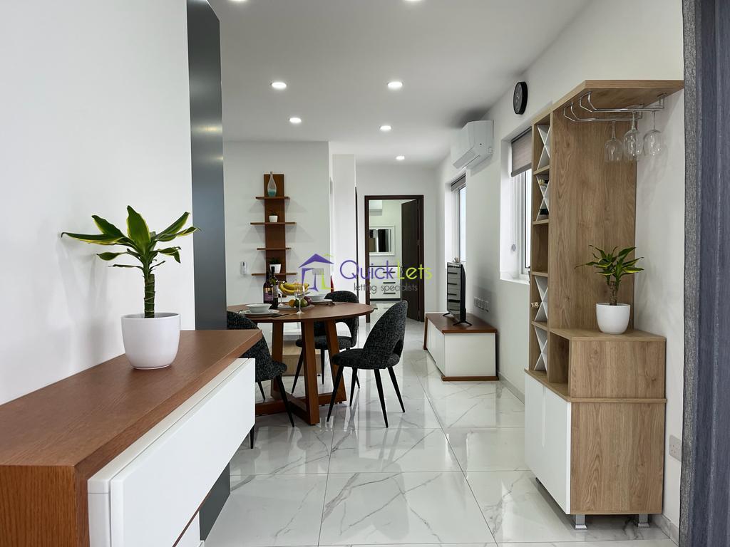 SAN GWANN -The very bright and brand new (2023) penthouse consists of an open plan with a kitchen fully equipped, a living room, table, and sofa with LCD TV, the living room leads to the big terrace enjoying a beautiful town view and a distant sea view, guest bathroom with the shower and one double bedroom. The property is highly finished and designed, close to the Church and Lidl of San Gwann and to all amenities daily.