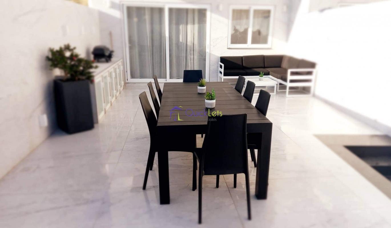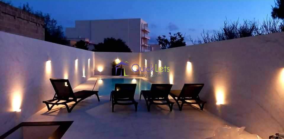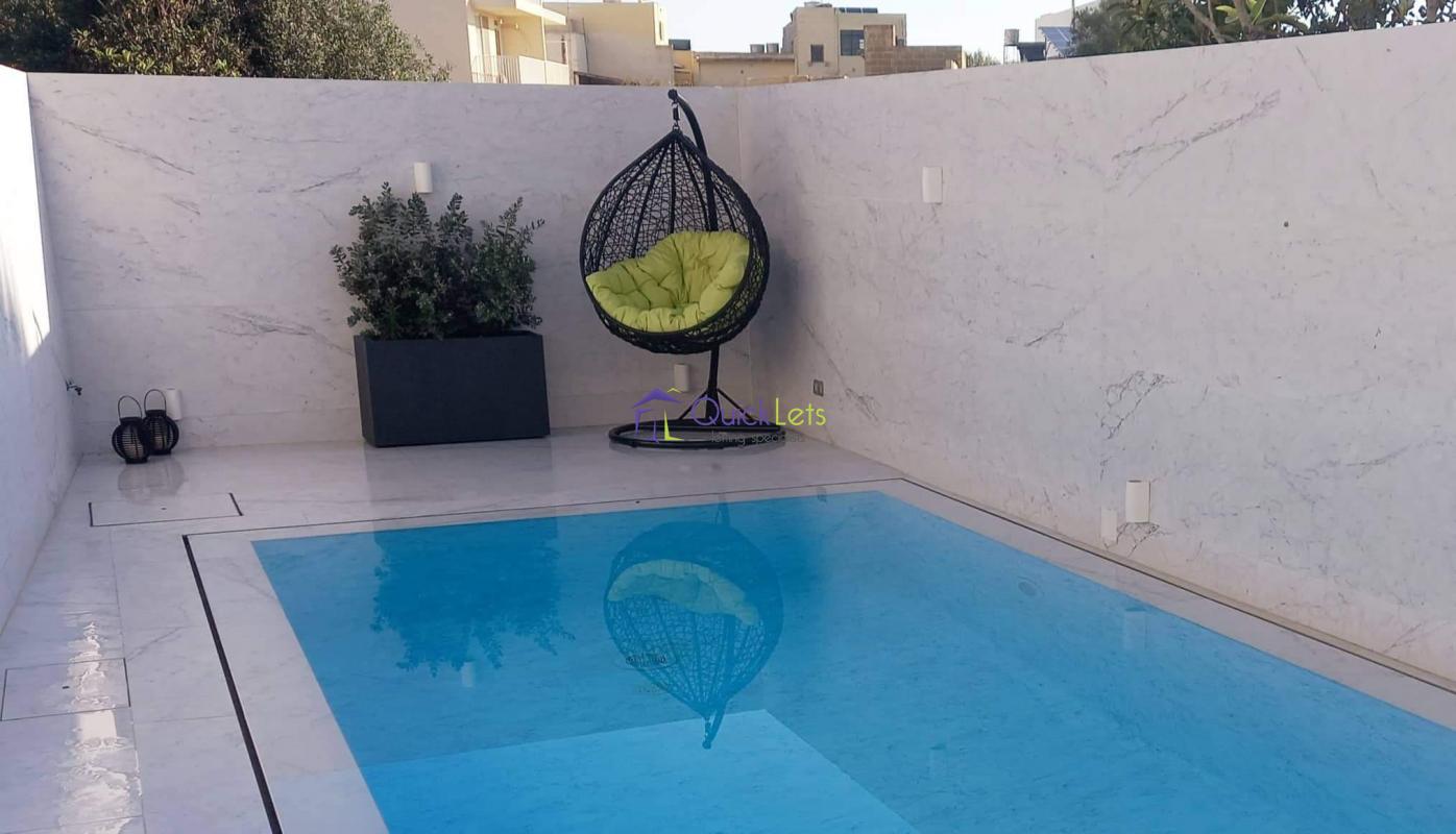 GHAJNSIELEM, Gozo - A ground-floor maisonette, the layout consists of three bedrooms, one ensuite and two guest bathrooms, a large kitchen/dining and living area with all modern appliances, there is an interconnecting garage, and also a large outside space with a pool, fully air-conditioned. This property is not pet-friendly, but it is very close to amenities.