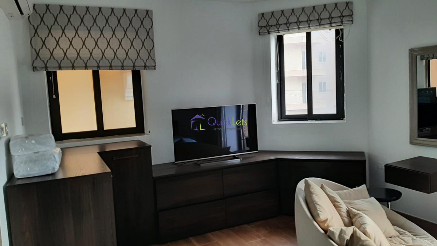 SWIEQI - Cosy two-bedroom corner apartment in Swieqi. Have an open-plan kitchen/living/dining area leading to the front big balcony. The main double bedroom has with en suite bathroom, and the second bedroom has a single bed. Guest bathroom, fully AC, private washroom with a washing machine on the roof. Close to all your daily amenities.