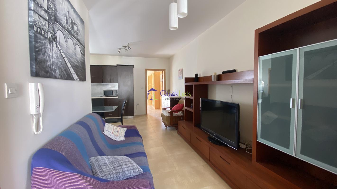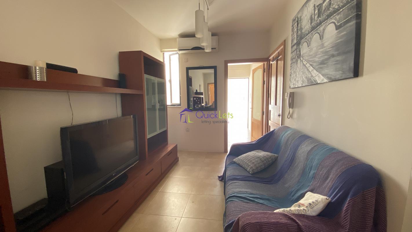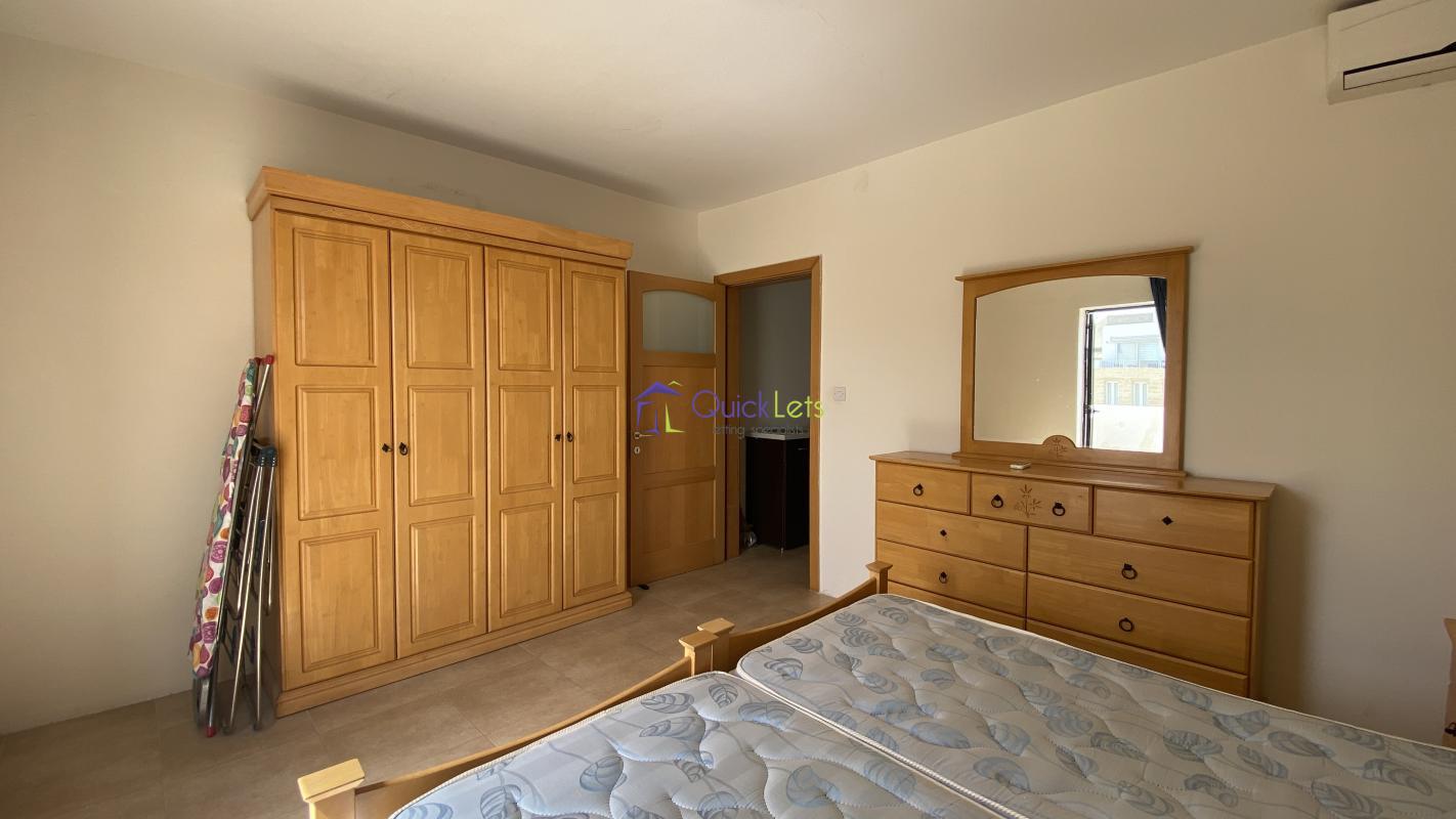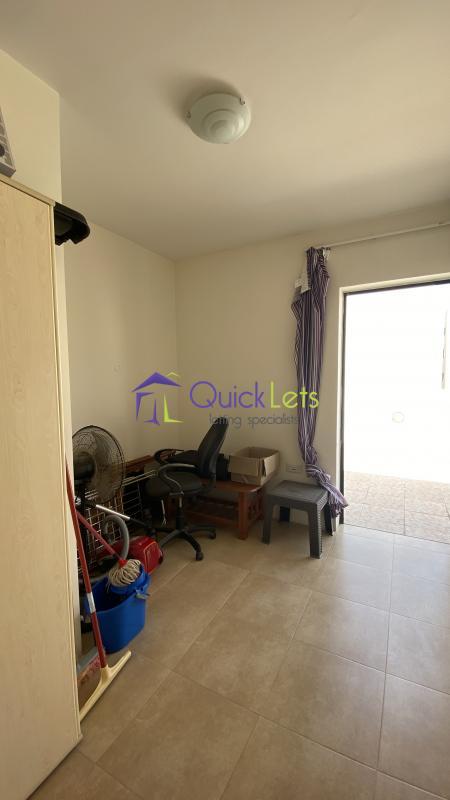 GZIRA - A two-bedroom penthouse located just a few minutes away from the sea. The block is served by the lift. The layout consists of the kitchen/dining/sitting area, a double main bedroom with an en-suite (bathtub), the main bathroom with the bathtub, a spare bedroom with twin beds and access to the back terrace, and a study room with the access to the large front terrace. The penthouse is finished, furnished, and has three A/Cs.