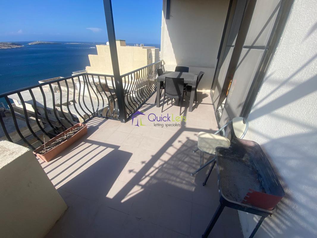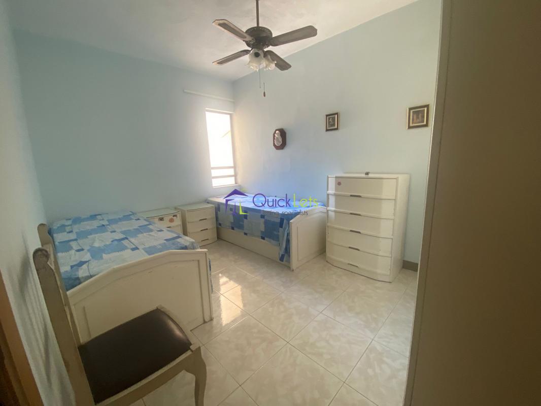 ST. PAUL’S BAY - A three-bedroom top-floor apartment located close to all amenities. The apartment consists of an open-plan kitchen/living/dining, a large front balcony with exceptional sea views, a corridor leading to two bathrooms, and three bedrooms (two bedrooms include double beds and one bedroom includes two single beds). From the back window, one can hang clothes and there are valley views. The apartment is not air-conditioned however is very airy.