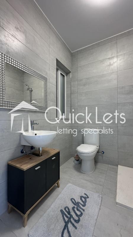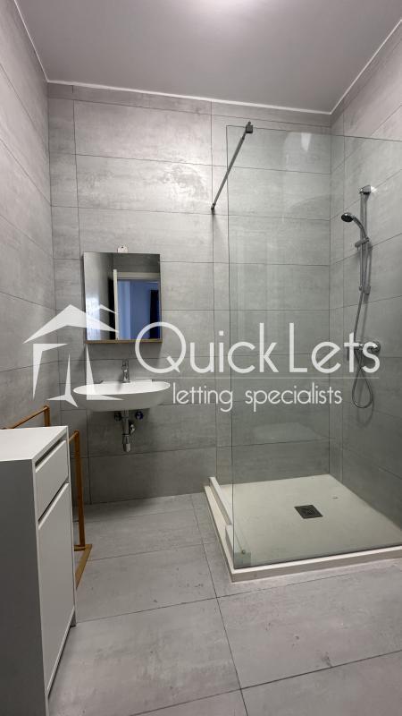 Main bathroom featuring a sleek shower.