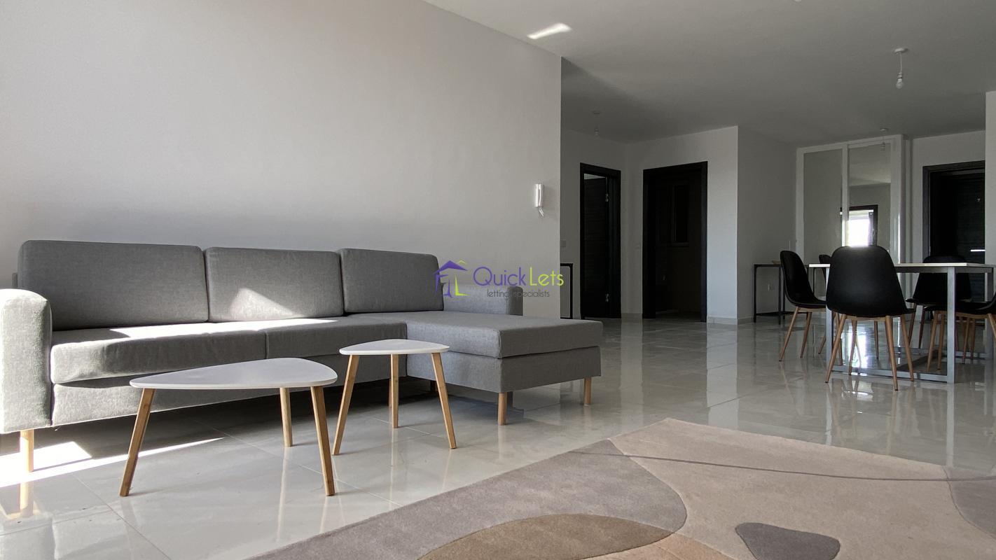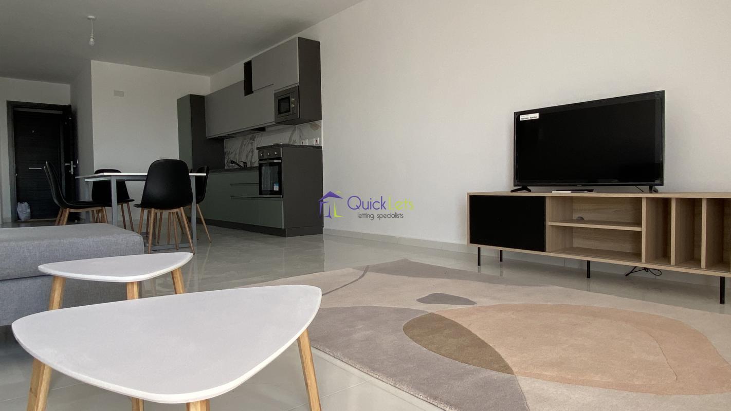 MARSASCALA - Here we find a brand new (2022) two-bedroom apartment in Marsaskala. The building served with a lift. The apartment comprises an open-plan kitchen/dining/living with A/C and a front balcony, the main double bedroom with a shower en-suite, the spare bedroom (currently empty and can be used as a study or bedroom with two single beds), the main bathroom with a shower, the utility room. This property comes fully furnished and fully air-conditioned. This apartment is equipped with a television, washing machine, fridge freezer, microwave, oven, hood, hob, dishwasher, and tumble dryer. Optional garage with the extra cost.