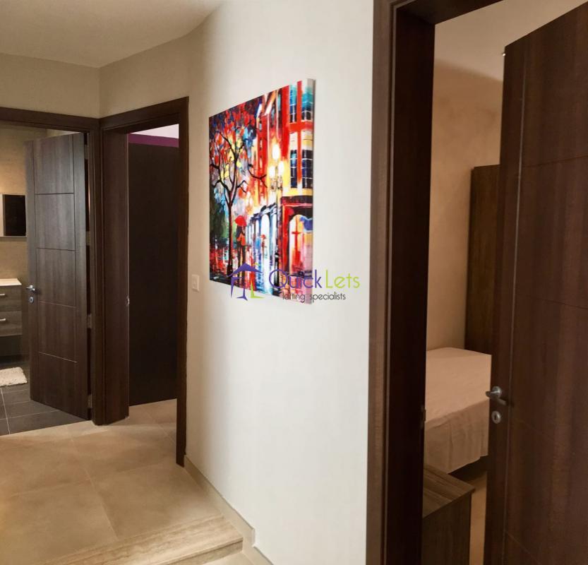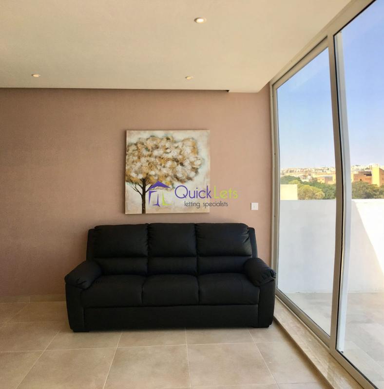 MSIDA - A Modern Two-Bedroom Penthouse in Msida. Comprising of one double bedroom, one twin bedroom, two bathrooms (one being an en-suite), a fully fitted kitchen, living and dining area with an interconnected front terrace having the washroom with a washing machine too as well as a back terrace for outdoor areas. The property is air-conditioned, situated on the 4th floor serviced with a lift, and close to all daily amenities and conveniences.