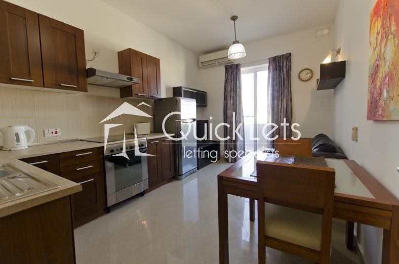 BUGIBBA | Experience contemporary living in this freshly-built, fully equipped one-bedroom apartment. Revel in its sleek design, boasting a well-appointed kitchen, generous bathroom, and a spacious rear balcony offering glimpses of the distant sea. Enjoy modern comforts with included appliances like dual air-conditioning units, a 32" SHARP LCD Television, refrigerator, gas oven, toaster, kettle, iron with board, washing machine, and clothes hanger. Complete with a comprehensive set of kitchen tools and bed linens, this luminous abode is conveniently situated near Bugibba/Qawra's vibrant center, ensuring a delightful stay filled with light and airiness.
